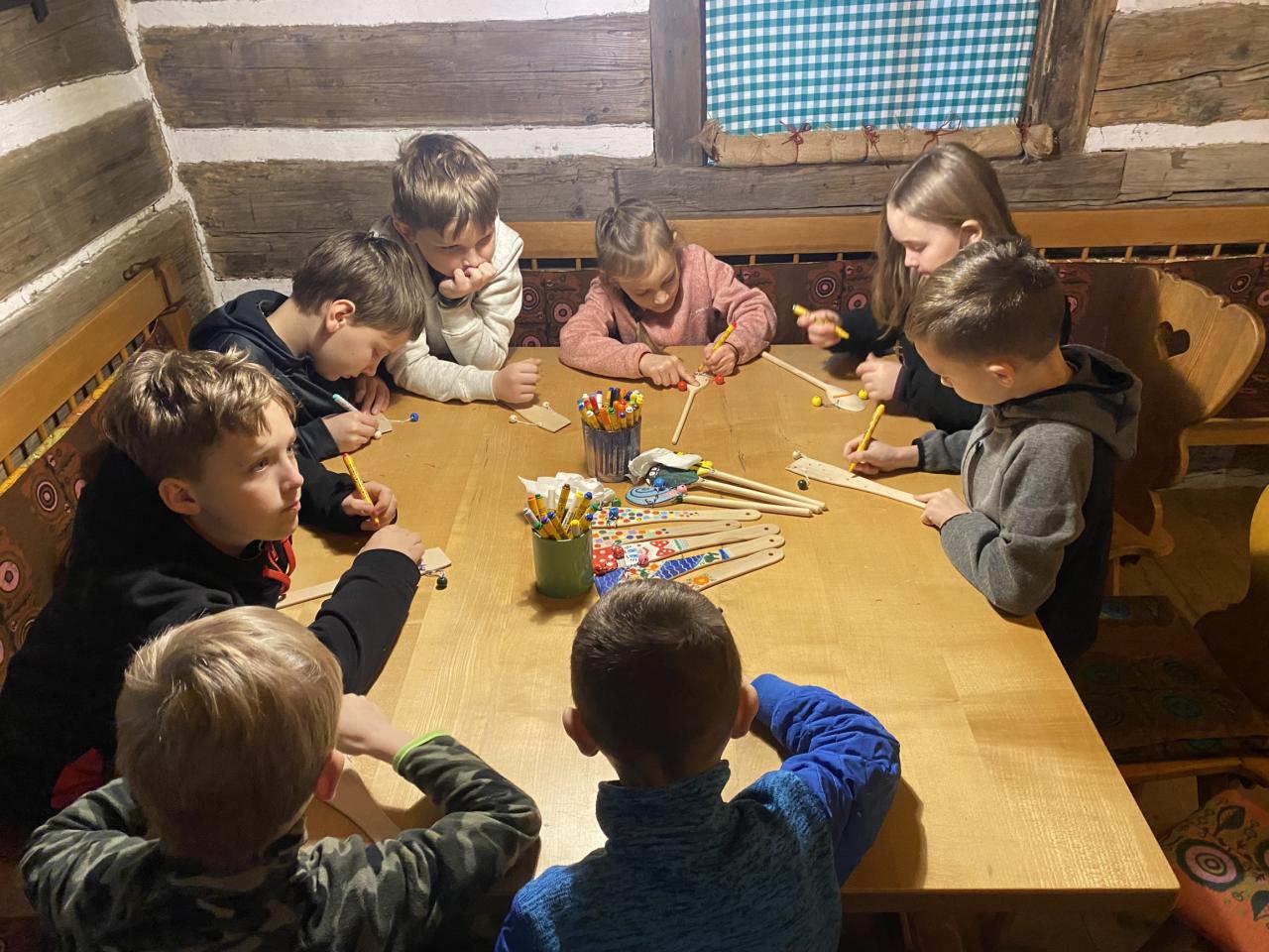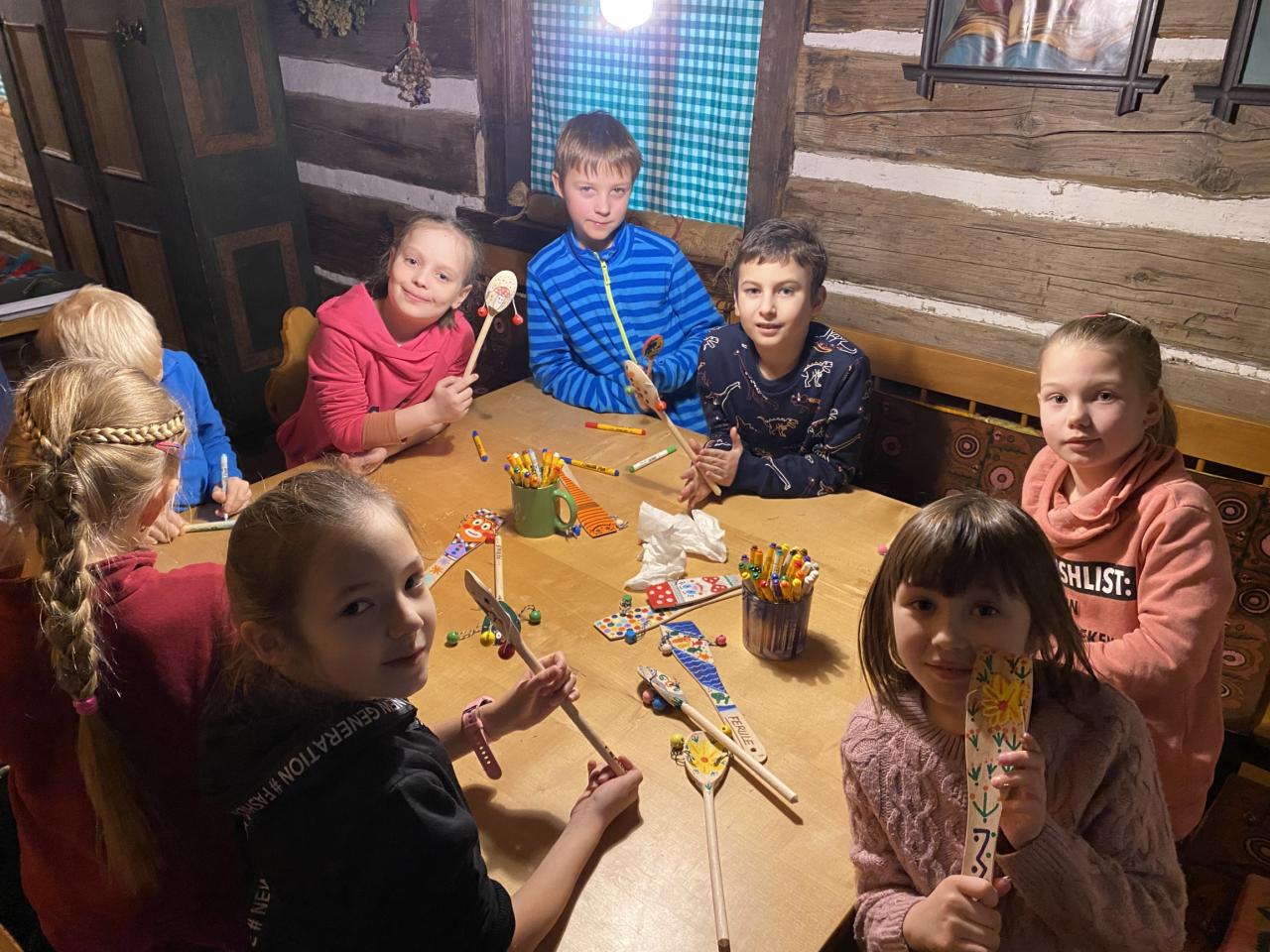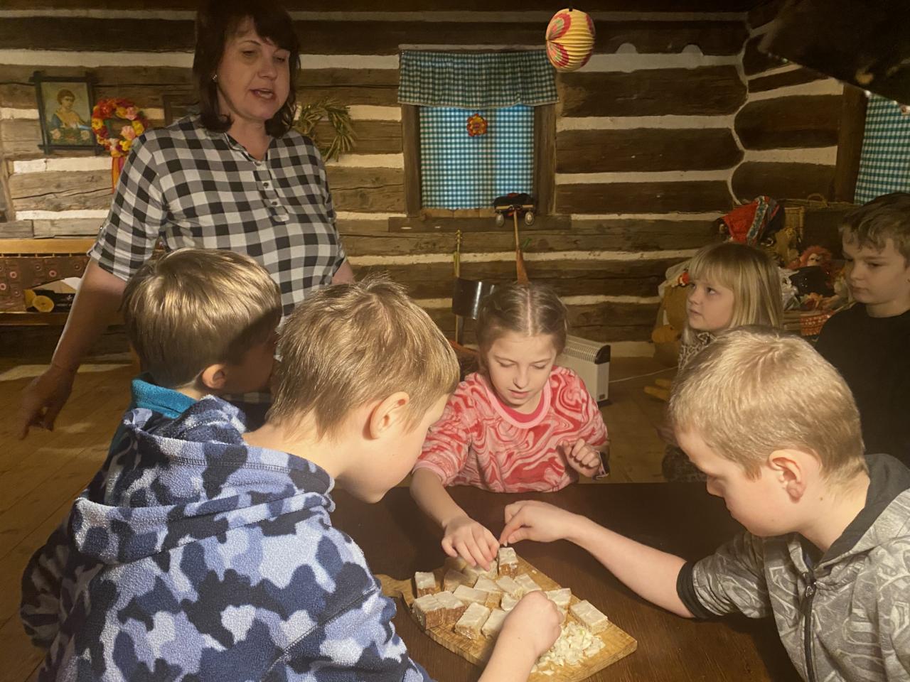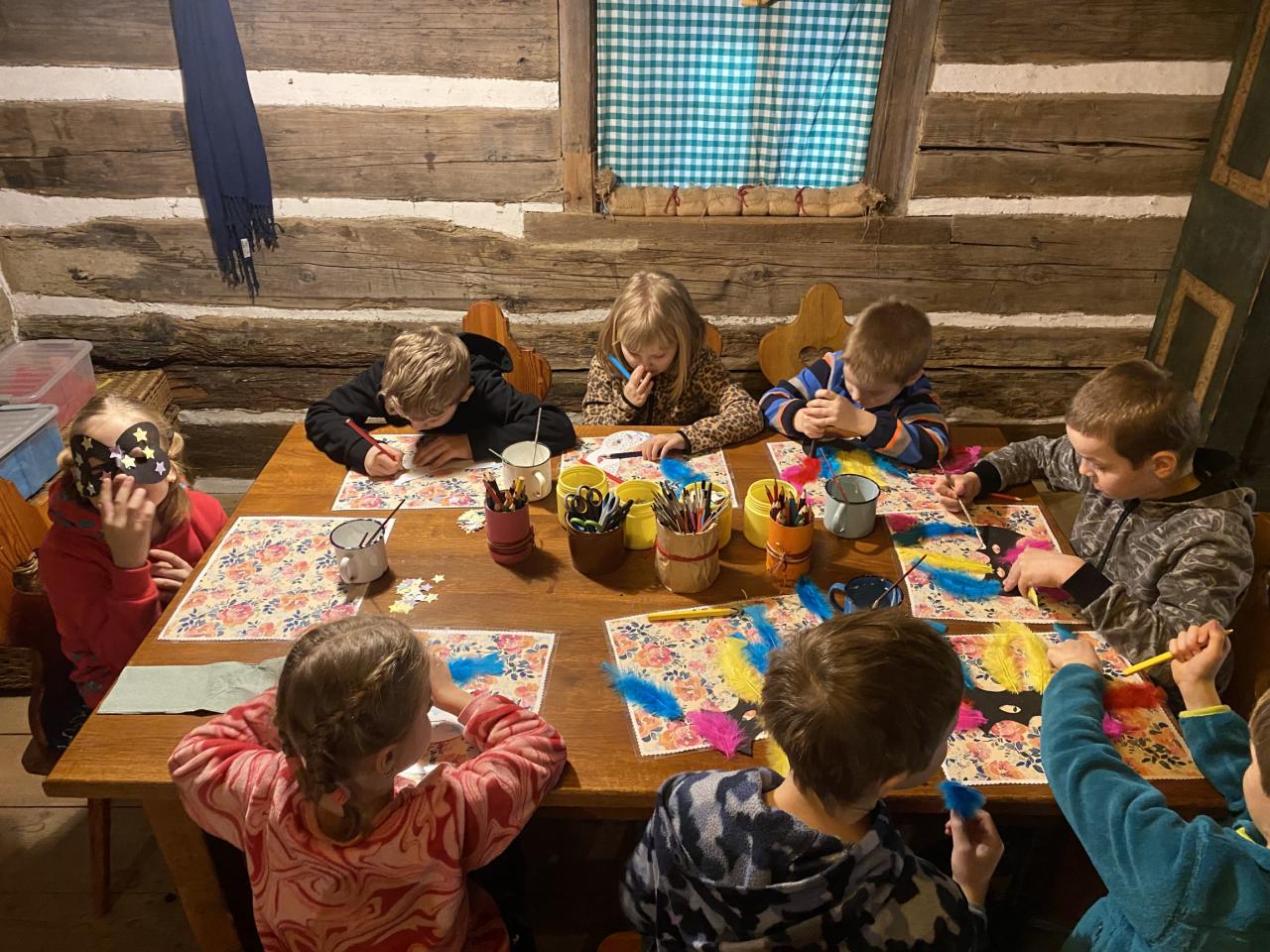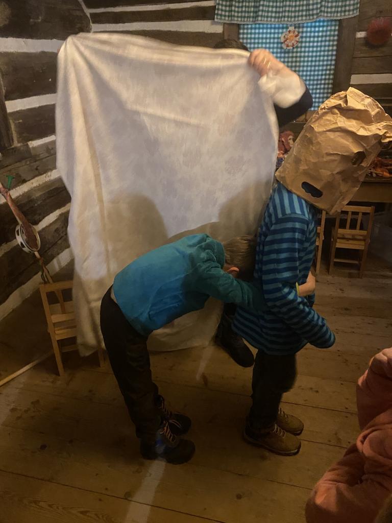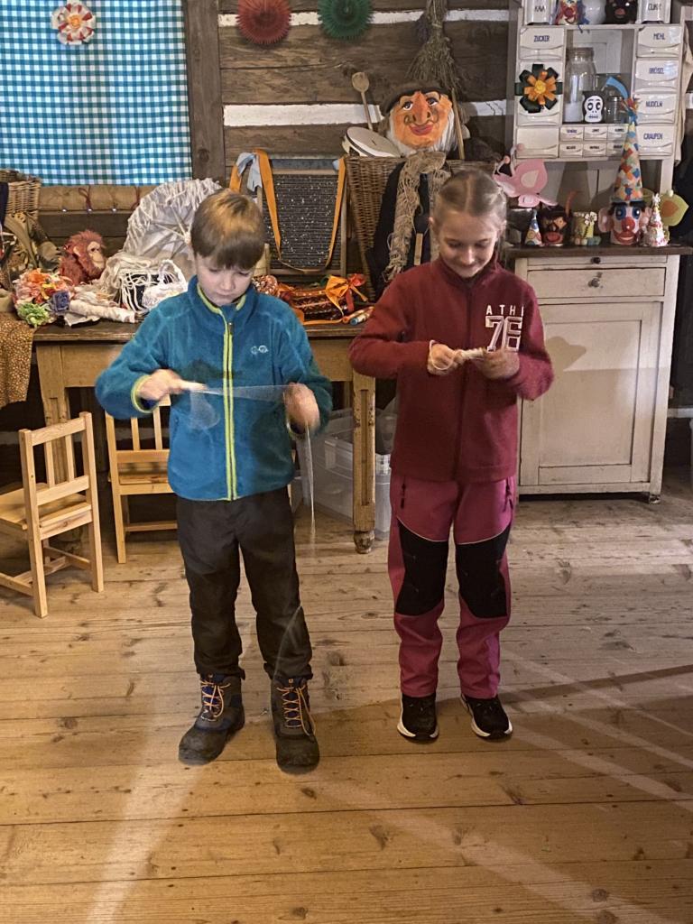 Teta Lenka, Šárka a Petra se věnovala každé skupince, takže děti vyráběly ferule, masku a upekly si vynikající mrkvánky s muzikou. Některé děti poprvé ochutnaly chleba se sádlem. Dobrovolníci zahráli masopustní svatbu, kdy chlapec představoval nevěstu a dívka ženicha. Na závěr si všichni zazpívali píseň s vozembouchem a prohlídli si výstavu masek v prvním patře. Děkujeme obětavým tetám, které stále udržují a předávají naše krásné tradice, které už pomalu mizí.