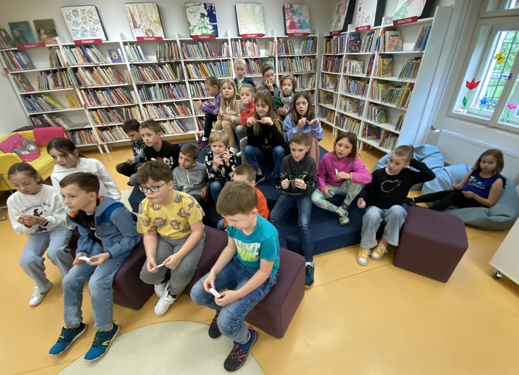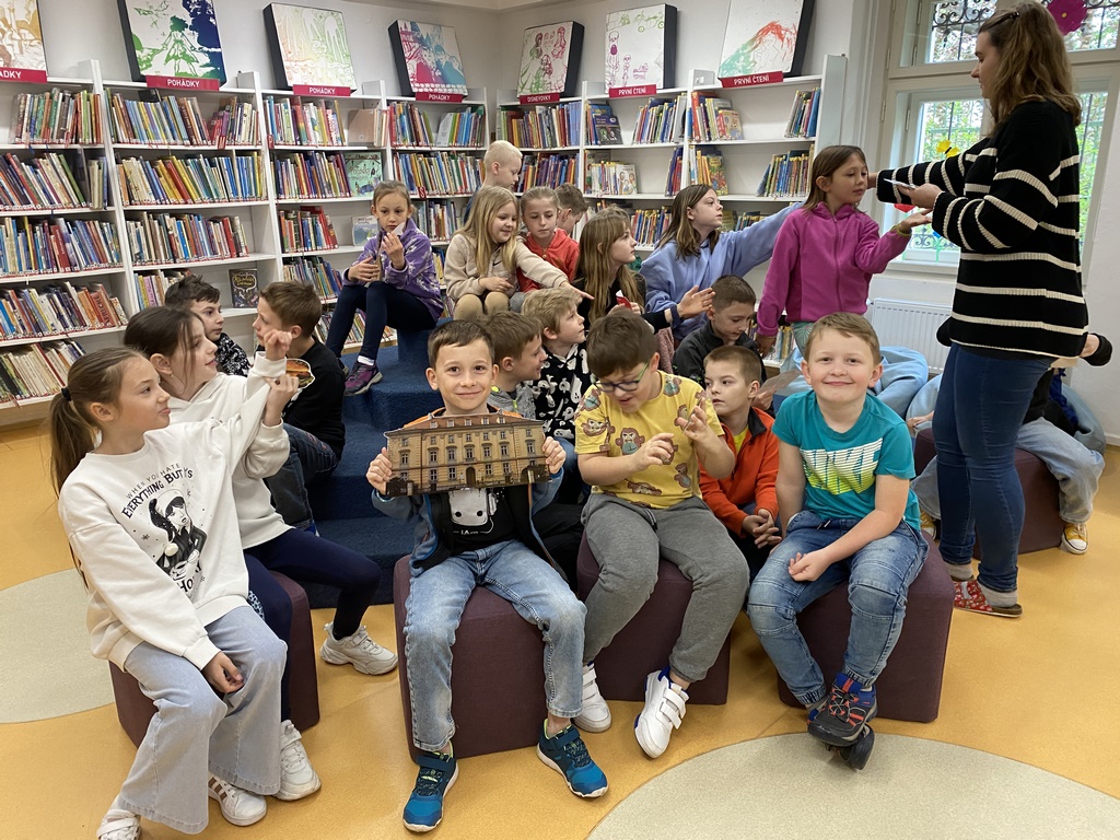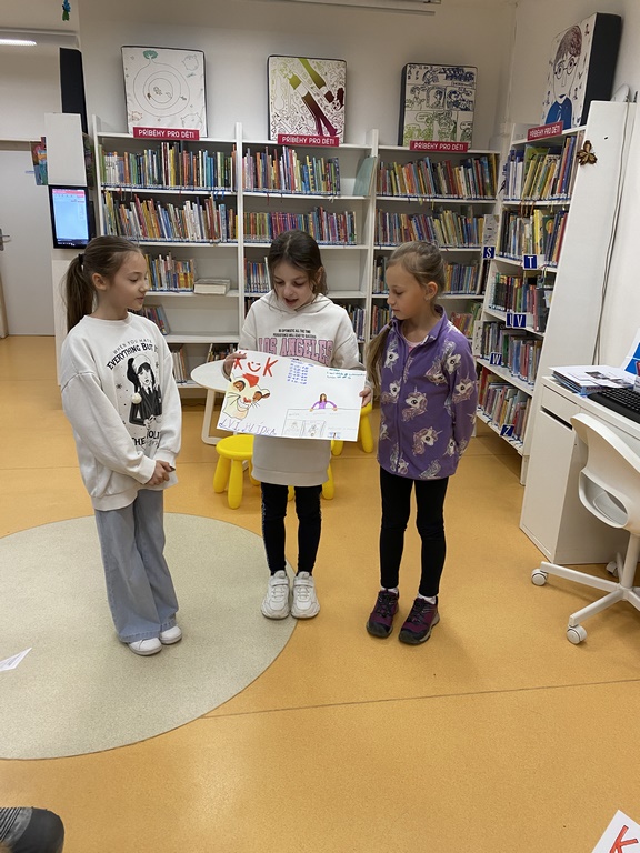 Paní knihovnice v Knihovně Ústeckého kraje vtáhla třeťáky do vzdělávacího programu hned od první chvíle. Děti s nadšením spolupracovaly, odpovídaly, aktivně vyhledávaly knihy a zjišťovaly různé informace. Zjistily, že se v knihovně dají půjčit kromě knih i různé hry, CD, skateboardy a mohou využívat i počítač. Na závěr žáci tvořili ve skupinách upoutávku na knihovnu. Do školy se třída vracela po skoro třech hodinách prohlížení a relaxování u knih.
