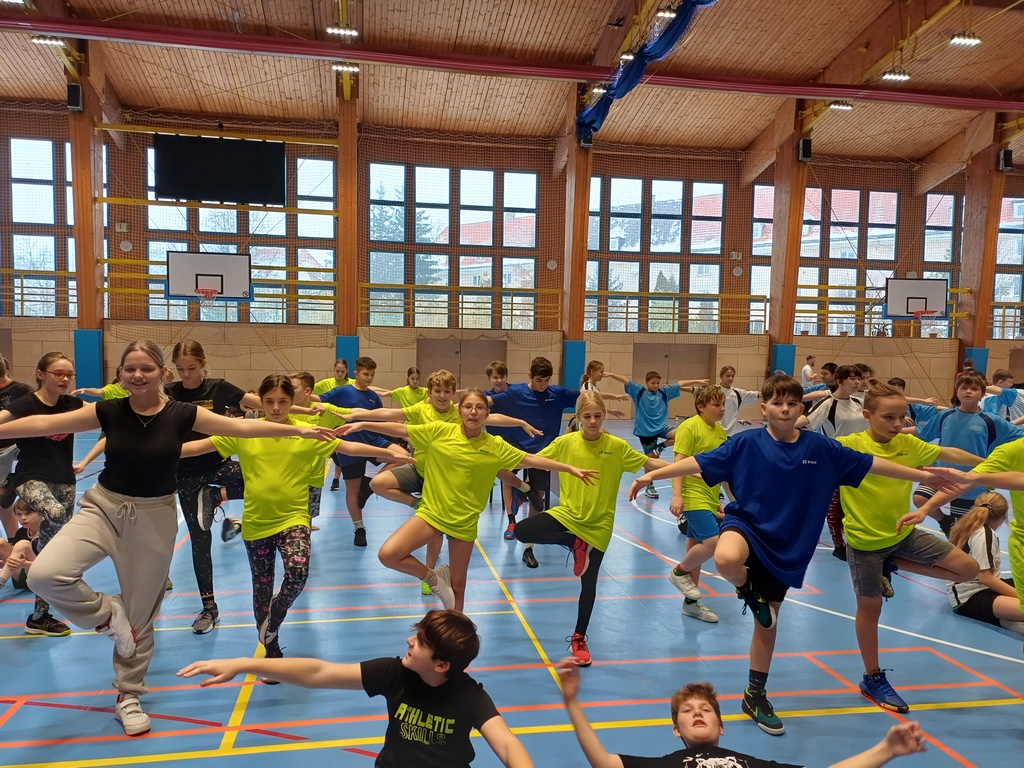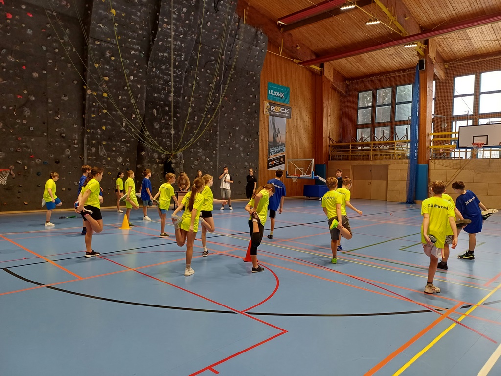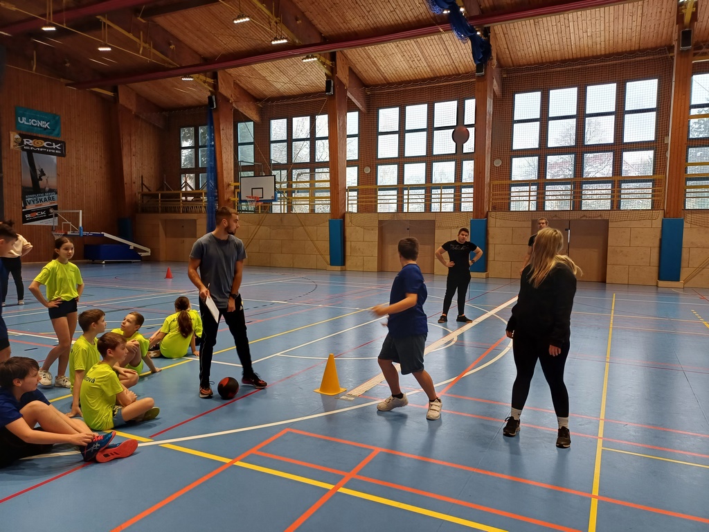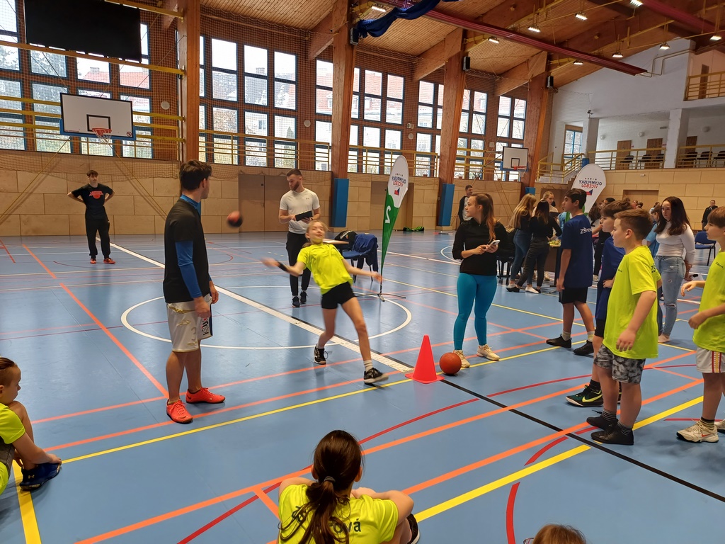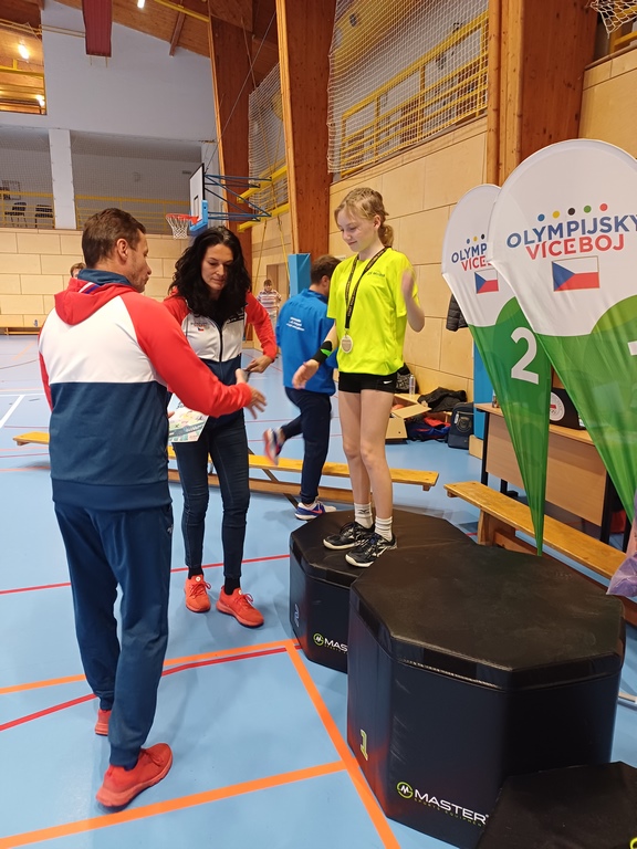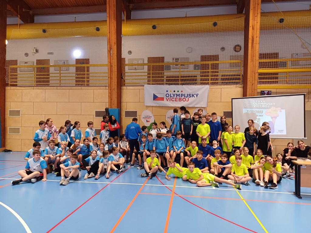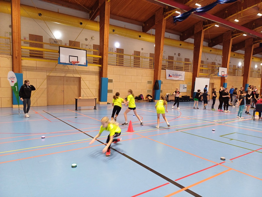 ejprve se šesťáci, studenti oboru učitelství TV a pořadatelé akce sešli v aule k teoretické části, kde byl projekt představen. Šárka Kašpárková (3. na OH v Atlantě v roce 1996 a 1. na MS v Aténách v roce 1997 v trojskoku) se podělila o svojí sportovní kariéru a zodpověděla mnoho zvídavých dotazů. Pak se všichni přesunuli do sportovní haly, kde byla společná rozcvička se švihadly a 4 stanoviště ke sportování. Naše škola začínala na bonusovém stanovišti, kde si žáci mohli změřit rychlost střely florbalovým míčkem, zkoušeli přesnost trefy do otvorů na florbalové brance a zasoutěžili si v rychlosti reakce na reakčních světlech. Následovaly tři soutěžní stanoviště, a to člunkový běh 4x 10 metrů, trojskok a hod medicinbalem. Výkony z těchto disciplín byly převedeny na body a na závěr bylo vyhlašování těch nejlepších. A naši šesťáci se rozhodně neztratili, domů si odvezli 3 vítězství ve svých kategoriích a další 4 umístění na stupních vítězů. Gratulujeme a všem děkujeme za vzornou reprezentaci školy.