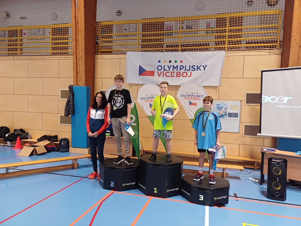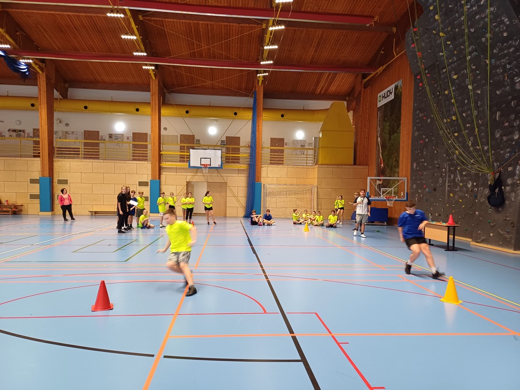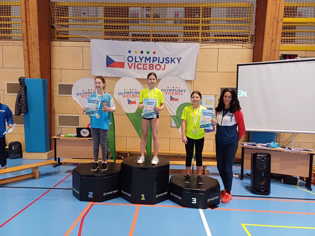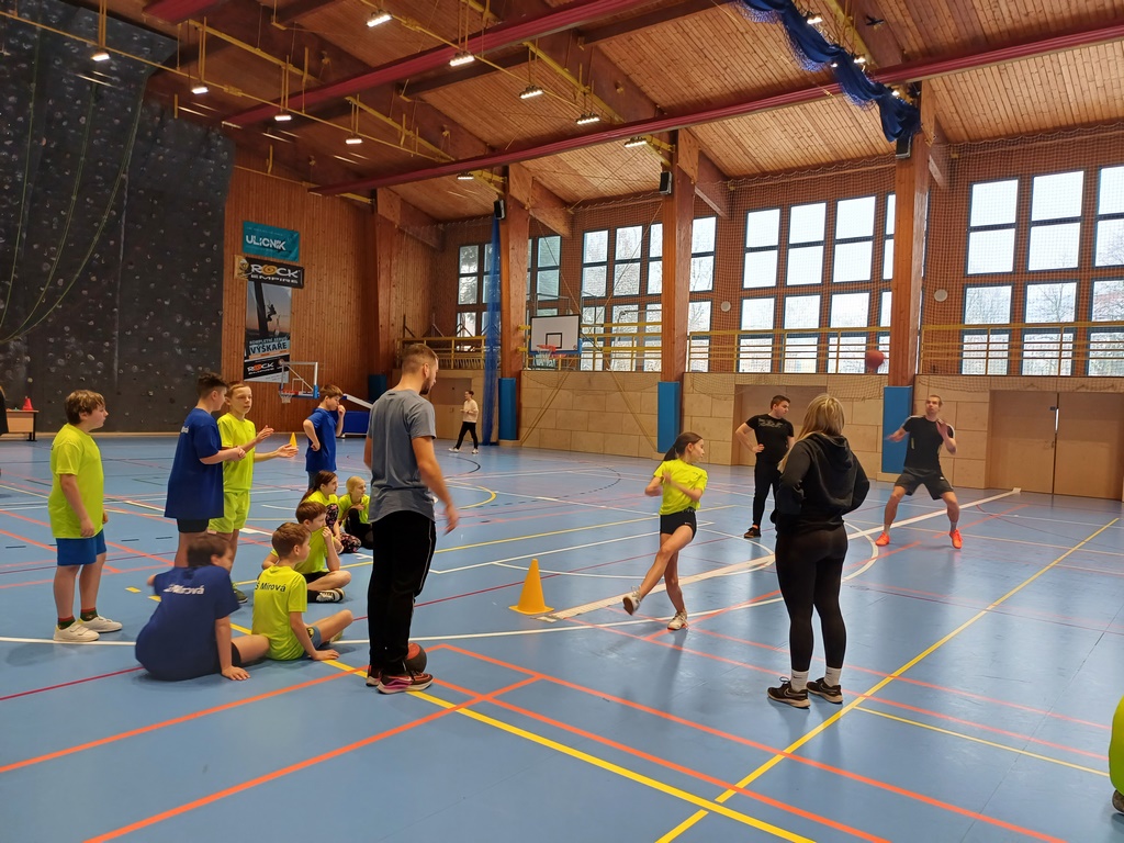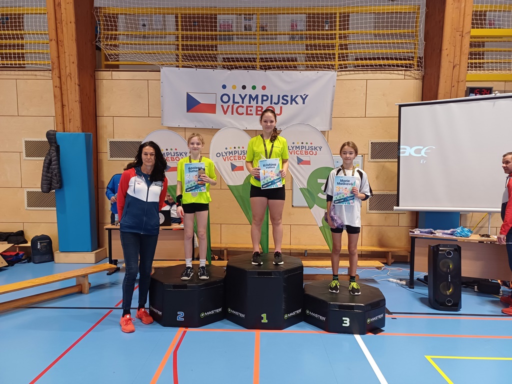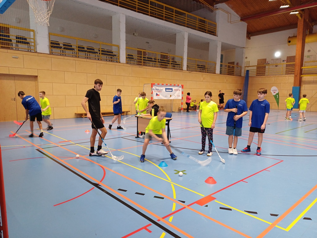 ejprve se šesťáci, studenti oboru učitelství TV a pořadatelé akce sešli v aule k teoretické části, kde byl projekt představen. Šárka Kašpárková (3. na OH v Atlantě v roce 1996 a 1. na MS v Aténách v roce 1997 v trojskoku) se podělila o svojí sportovní kariéru a zodpověděla mnoho zvídavých dotazů. Pak se všichni přesunuli do sportovní haly, kde byla společná rozcvička se švihadly a 4 stanoviště ke sportování. Naše škola začínala na bonusovém stanovišti, kde si žáci mohli změřit rychlost střely florbalovým míčkem, zkoušeli přesnost trefy do otvorů na florbalové brance a zasoutěžili si v rychlosti reakce na reakčních světlech. Následovaly tři soutěžní stanoviště, a to člunkový běh 4x 10 metrů, trojskok a hod medicinbalem. Výkony z těchto disciplín byly převedeny na body a na závěr bylo vyhlašování těch nejlepších. A naši šesťáci se rozhodně neztratili, domů si odvezli 3 vítězství ve svých kategoriích a další 4 umístění na stupních vítězů. Gratulujeme a všem děkujeme za vzornou reprezentaci školy.