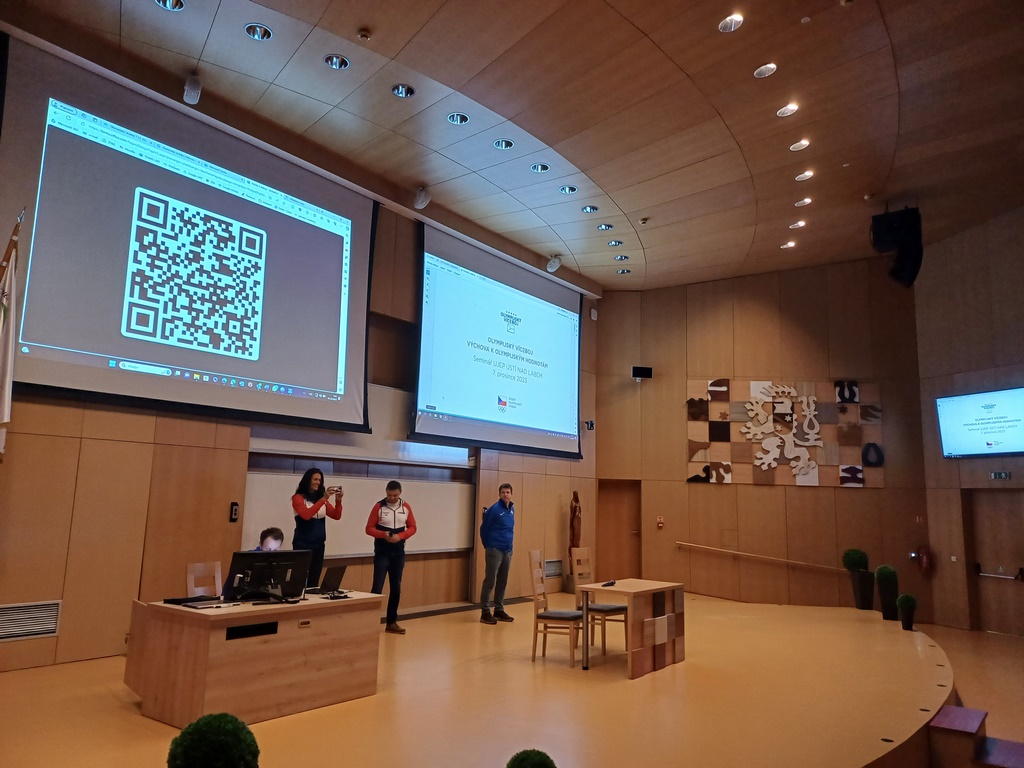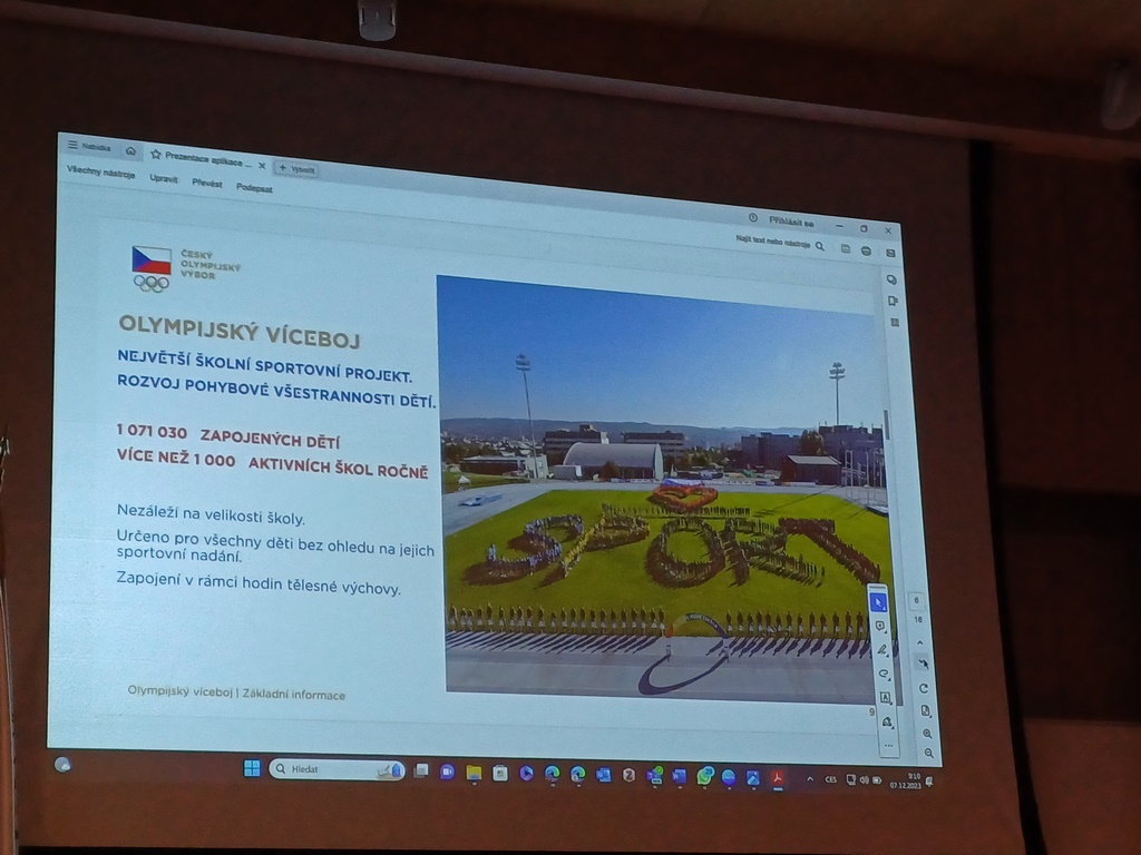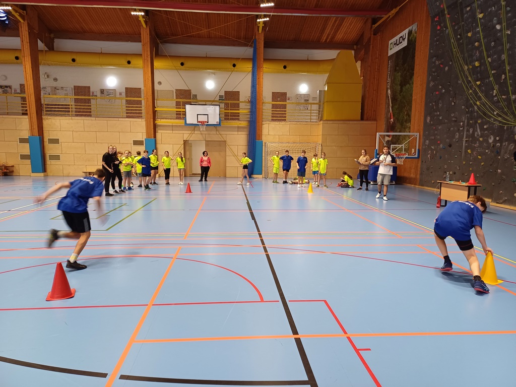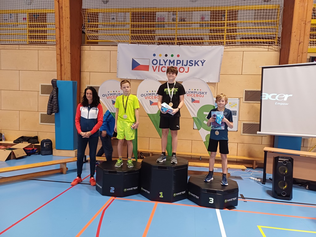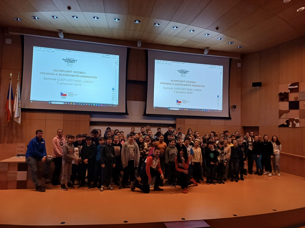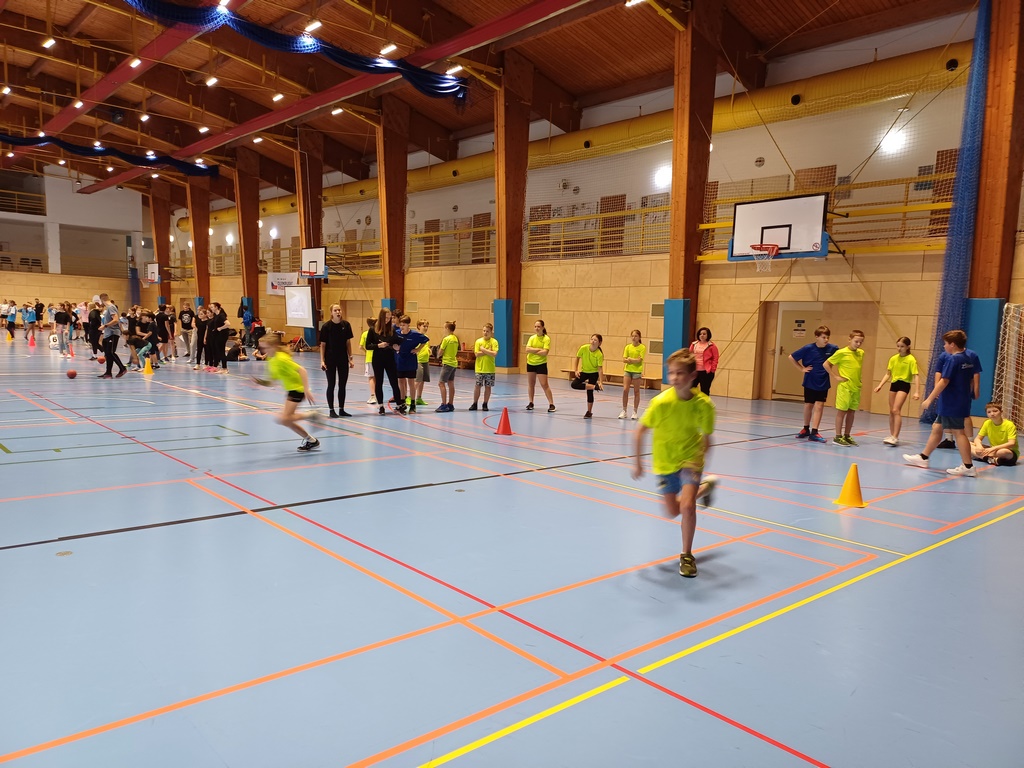 ejprve se šesťáci, studenti oboru učitelství TV a pořadatelé akce sešli v aule k teoretické části, kde byl projekt představen. Šárka Kašpárková (3. na OH v Atlantě v roce 1996 a 1. na MS v Aténách v roce 1997 v trojskoku) se podělila o svojí sportovní kariéru a zodpověděla mnoho zvídavých dotazů. Pak se všichni přesunuli do sportovní haly, kde byla společná rozcvička se švihadly a 4 stanoviště ke sportování. Naše škola začínala na bonusovém stanovišti, kde si žáci mohli změřit rychlost střely florbalovým míčkem, zkoušeli přesnost trefy do otvorů na florbalové brance a zasoutěžili si v rychlosti reakce na reakčních světlech. Následovaly tři soutěžní stanoviště, a to člunkový běh 4x 10 metrů, trojskok a hod medicinbalem. Výkony z těchto disciplín byly převedeny na body a na závěr bylo vyhlašování těch nejlepších. A naši šesťáci se rozhodně neztratili, domů si odvezli 3 vítězství ve svých kategoriích a další 4 umístění na stupních vítězů. Gratulujeme a všem děkujeme za vzornou reprezentaci školy.