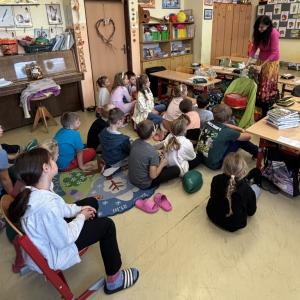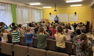 Školní družinu navštívil pan myslivec, aby povyprávěl dětem o lese.