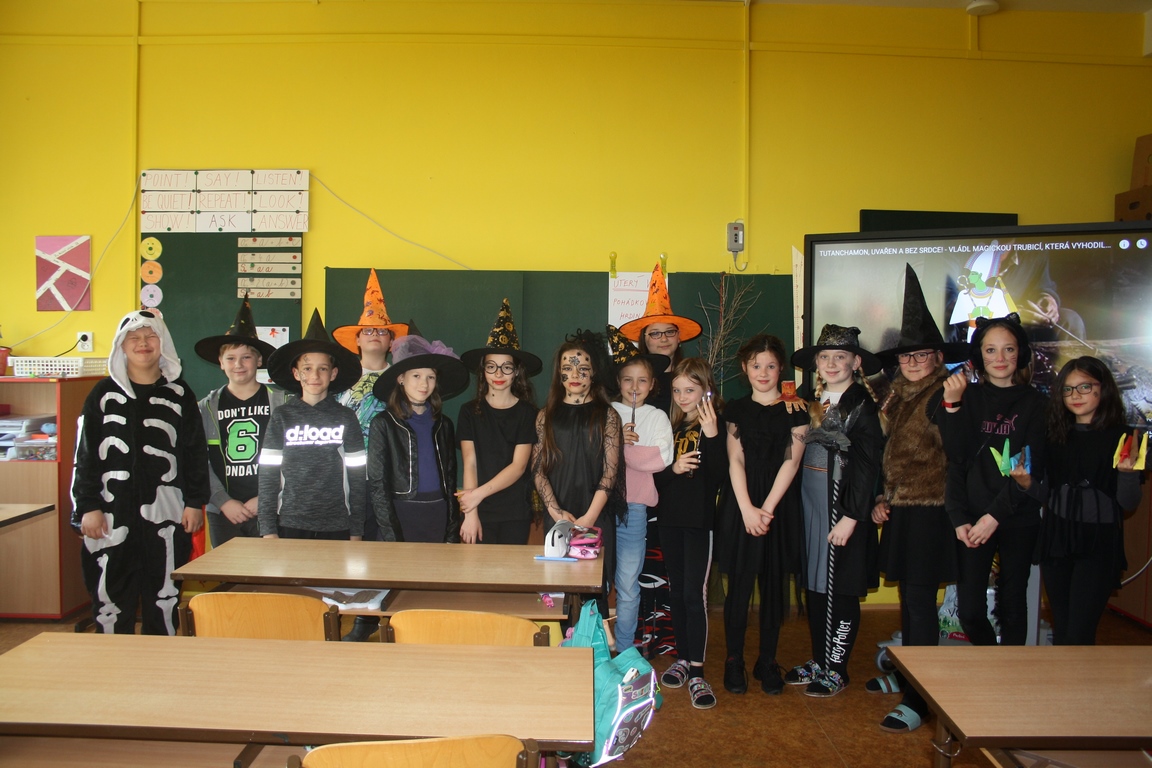 Abychom velké žáky na druhém stupni motivovali převléknout se do masek, vymysleli jsme, že třída s největším počtem žáků v maskách následující týden nebude ústně a písemně zkoušena. Celkem tuto odměnu vyhrálo 5 tříd: 6.A, 6.C, 8.B, 9.B a 9.C.