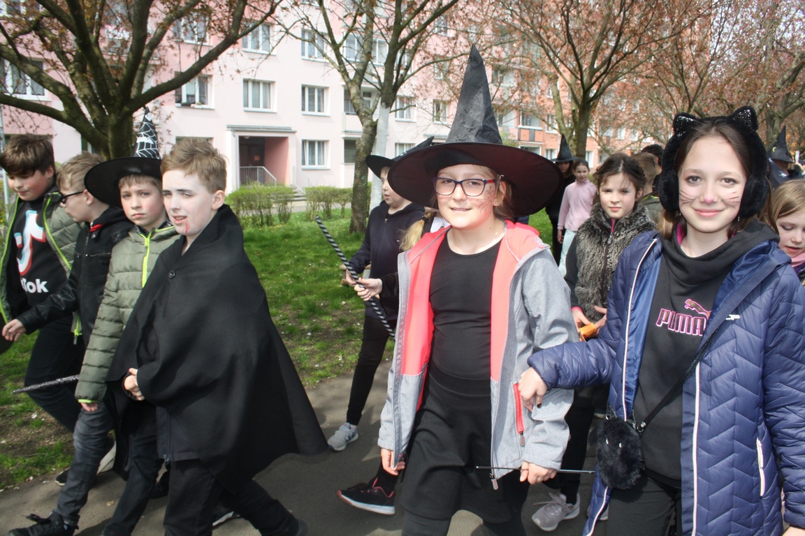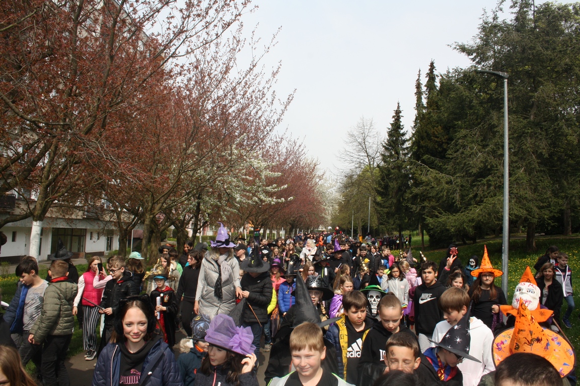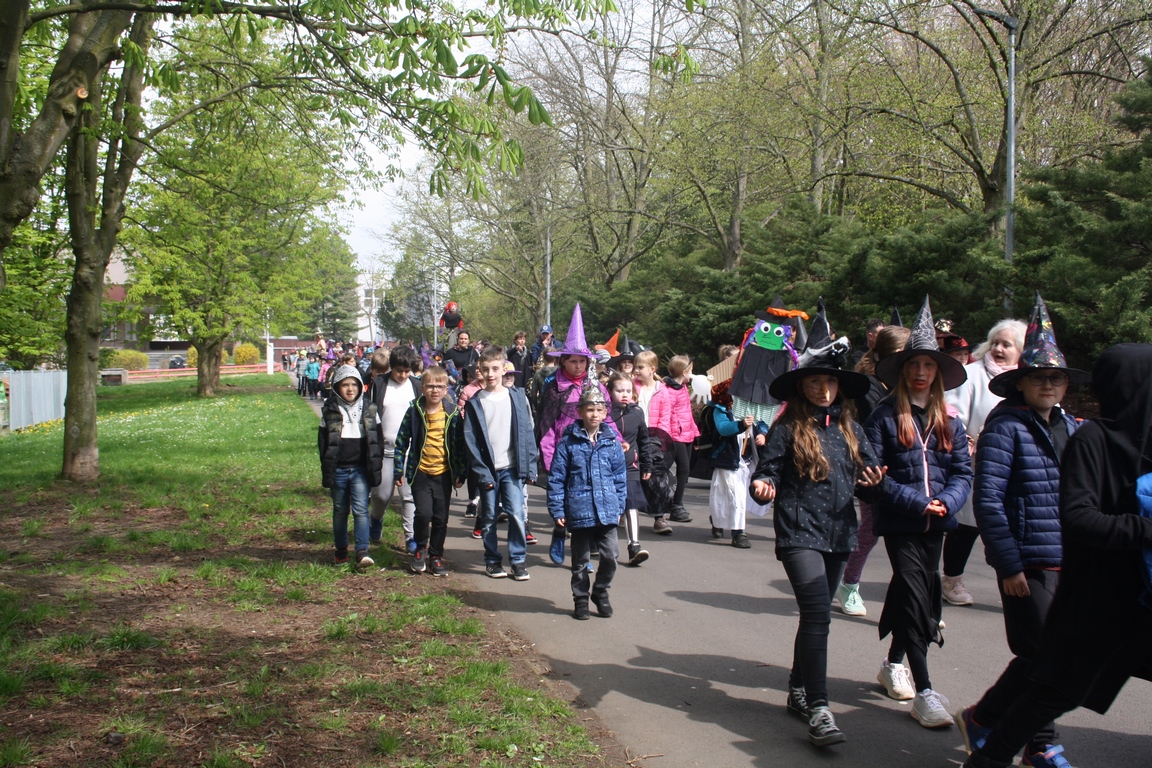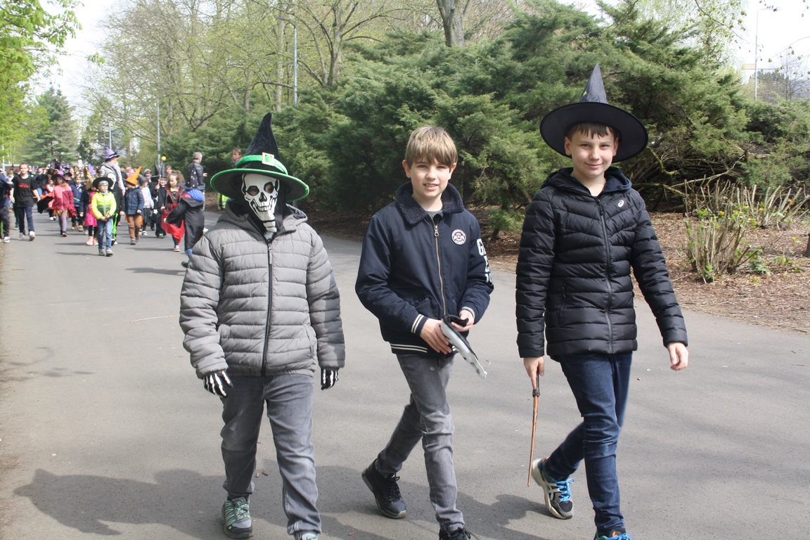 Pátek 28.4.2023 se nesl v čarodějnickém duchu, neboť téměř všichni žáci přišli přestrojeni za čaroděje a čarodějnice. První stupeň následně převedl své masky při čarodějnickém průvodu po parku okolo Laguny. Bylo pěkné, jak se kolemjdoucí zastavili a kochali se naším průvodem.