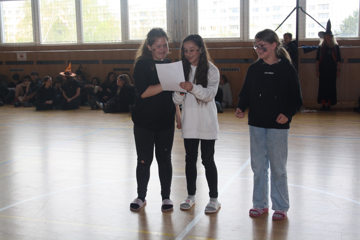 Třídy na druhém stupni byly zaměstnány tvorbou čarodějnice z materiálů, který si žáci přinesli z domova. Následovala hra s QR kódy, podle kterých museli najít vybrané místo na škole a školním pozemku a tam si načíst další QR kód, pod kterým bylo schované slovo. Ze všech slov měli za úkol složit báseň. Závěrem celého dne byl přednes básně ve velké tělocvičně.