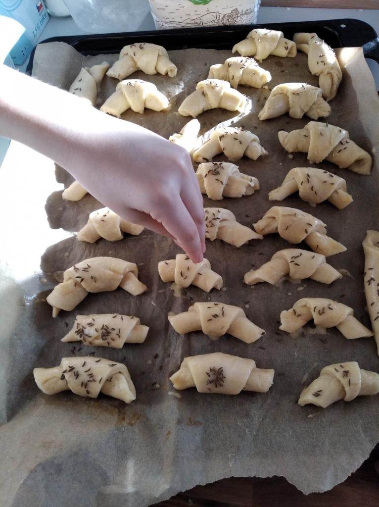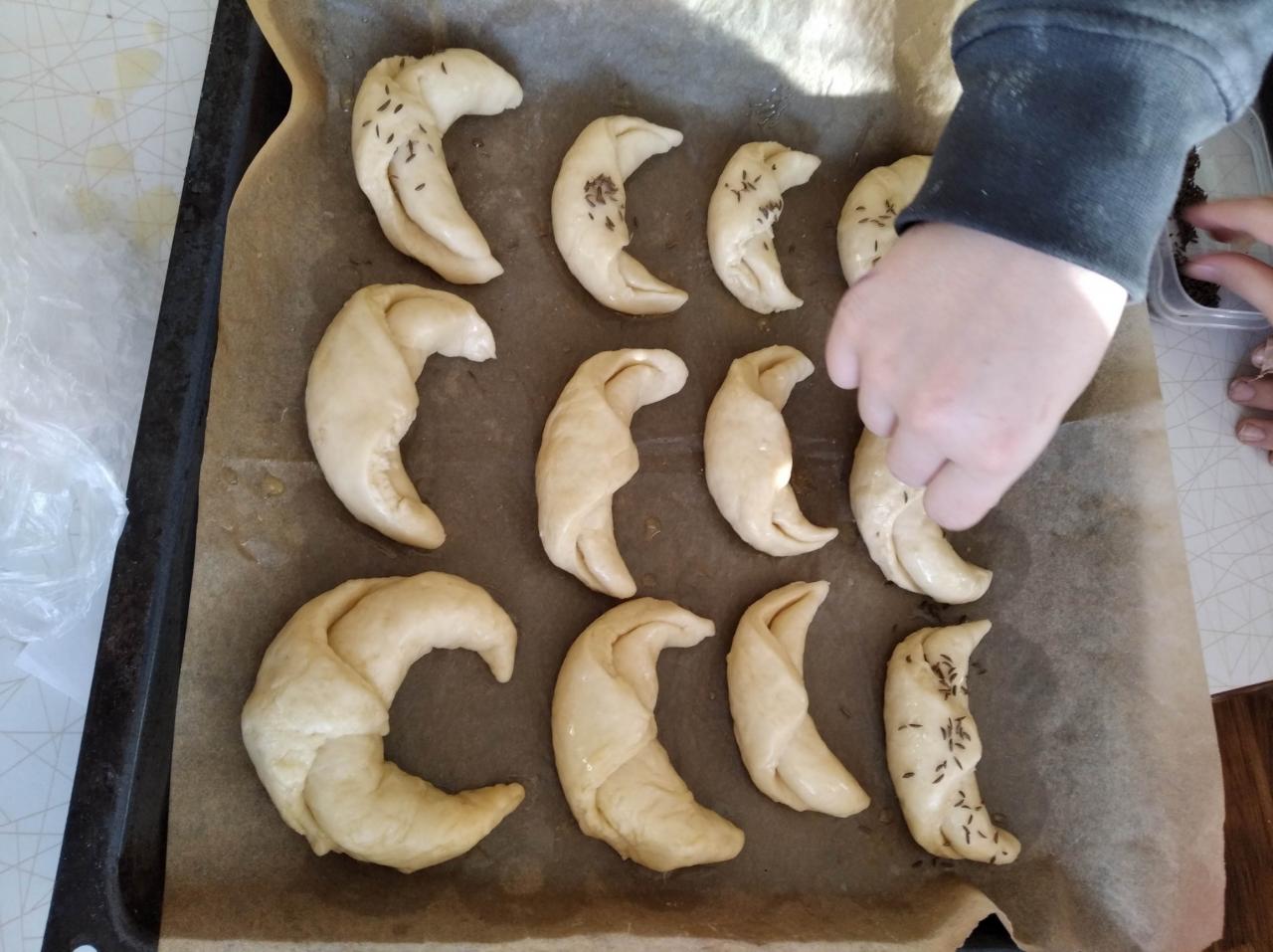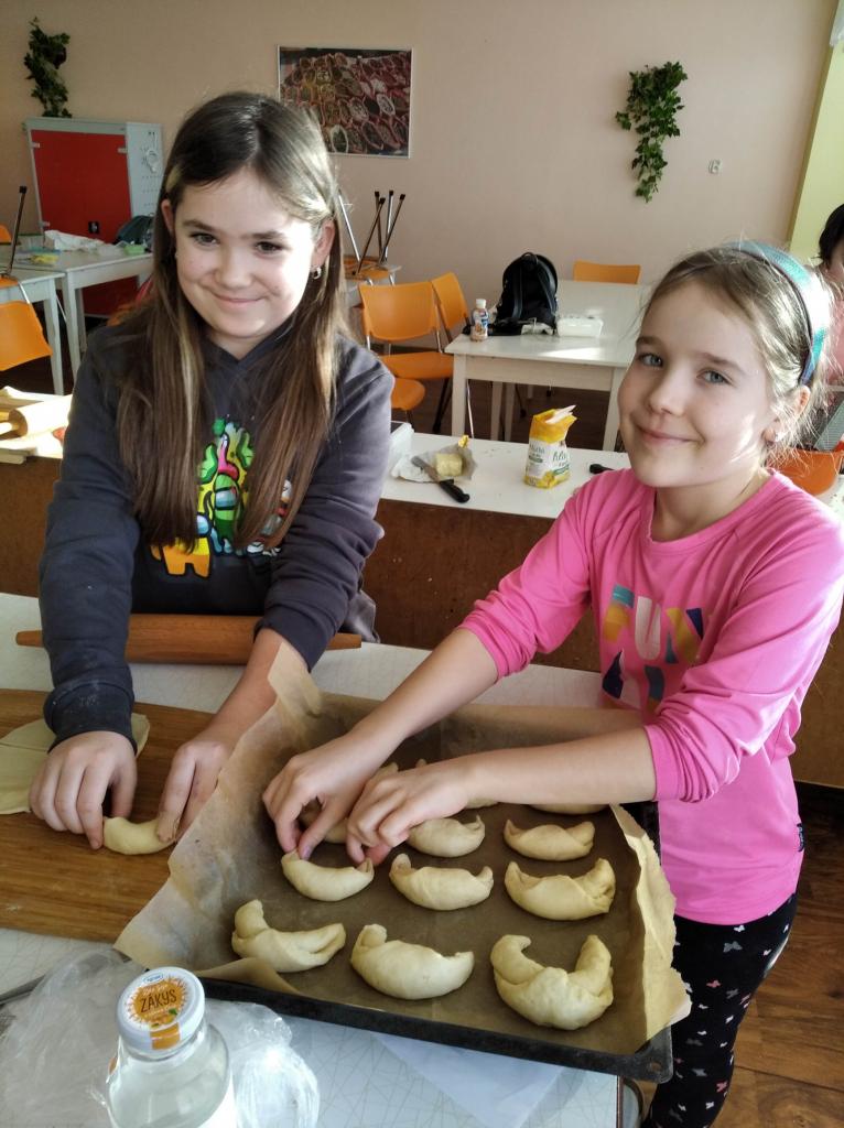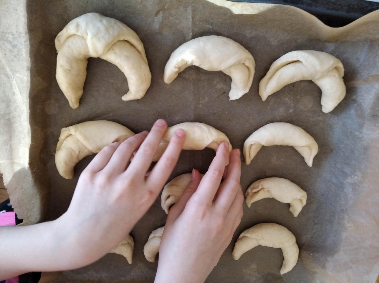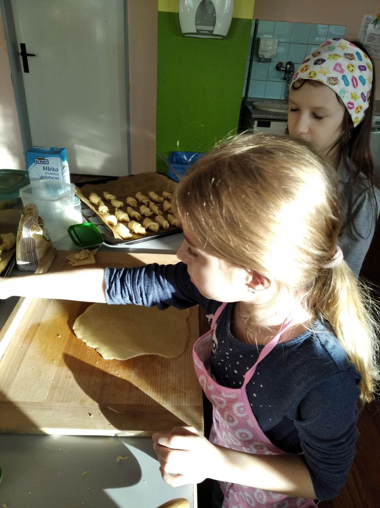 Základem receptu bylo kynuté těsto, což pro děti není úplně lehké, ale i tak se kvásek povedl všem. Velikost rohlíků si děti zvolily podle svého a takto vypadá výsledek. Chuťově jsou rohlíky dobré a určitě si je vyzkoušejte.
