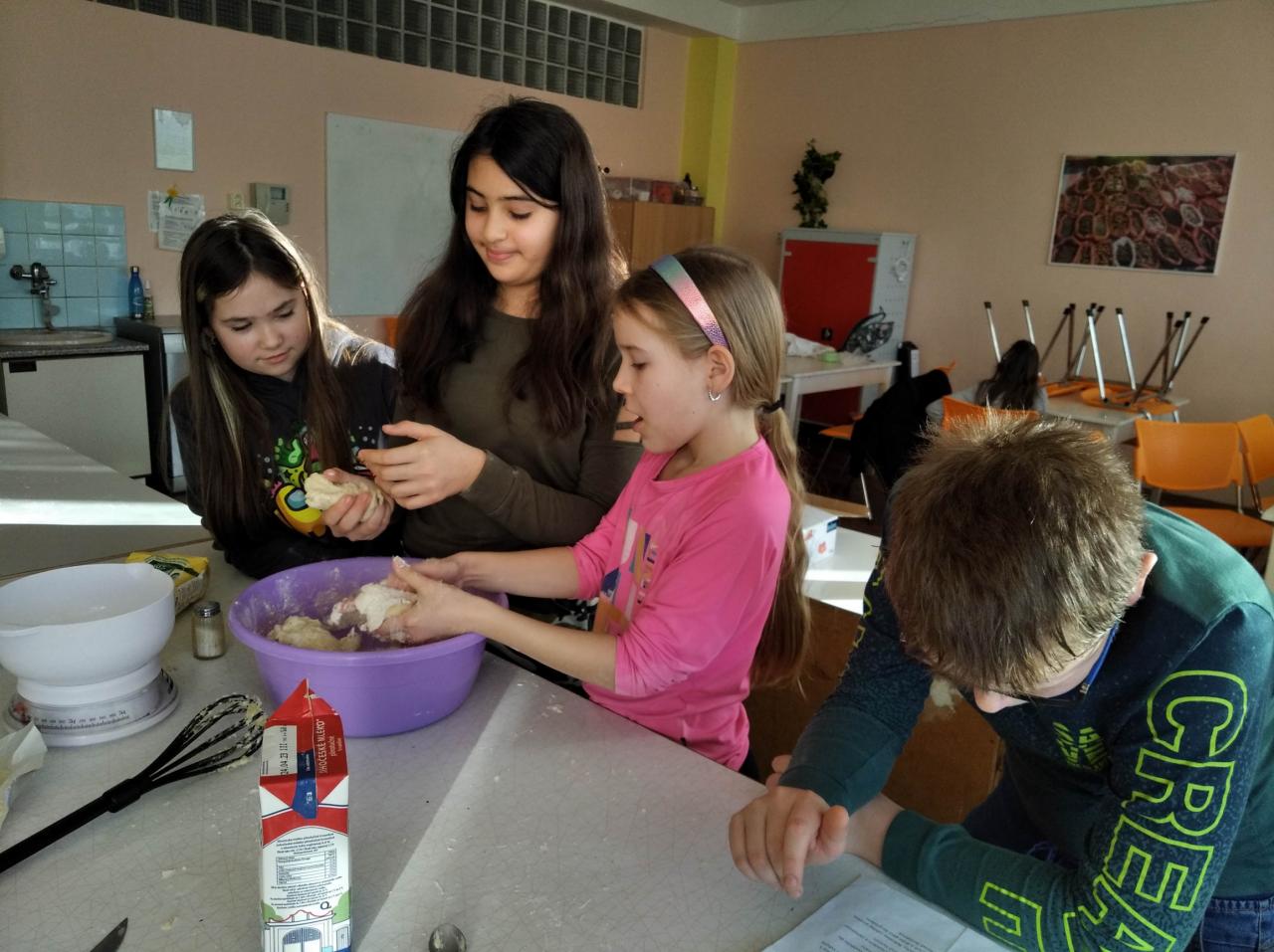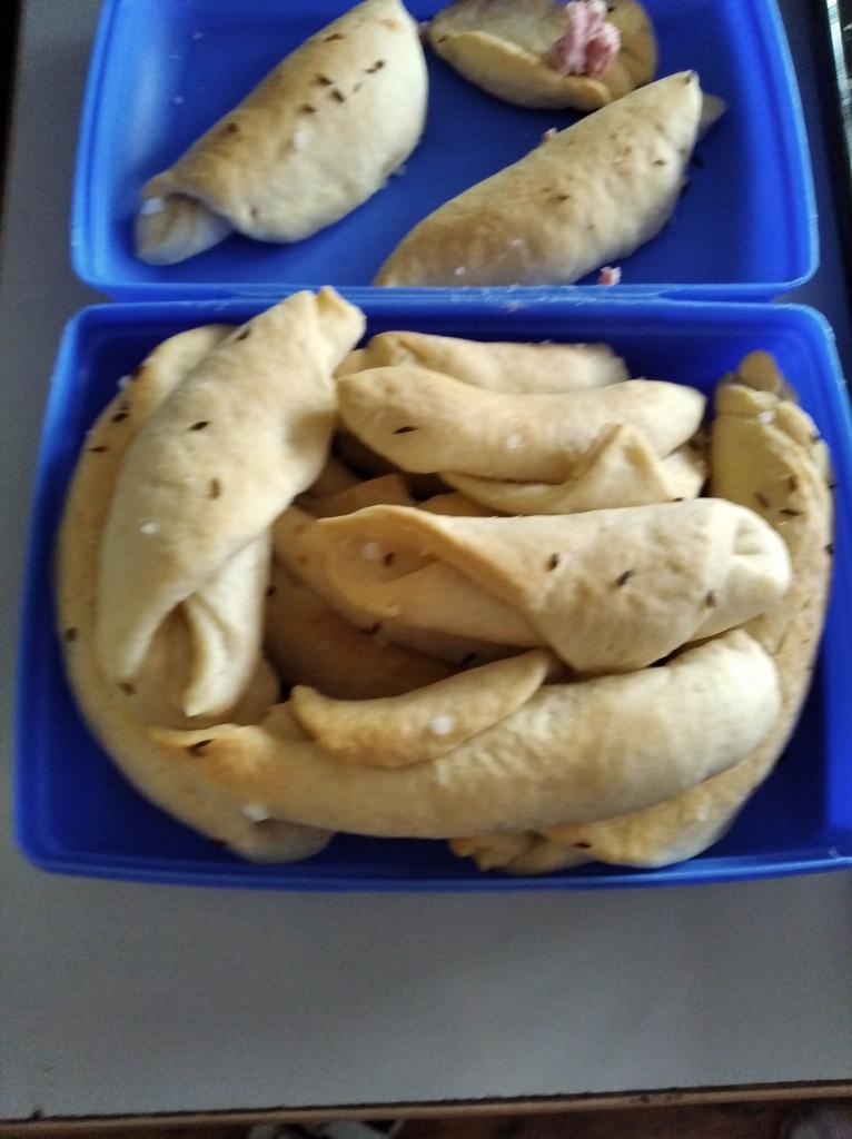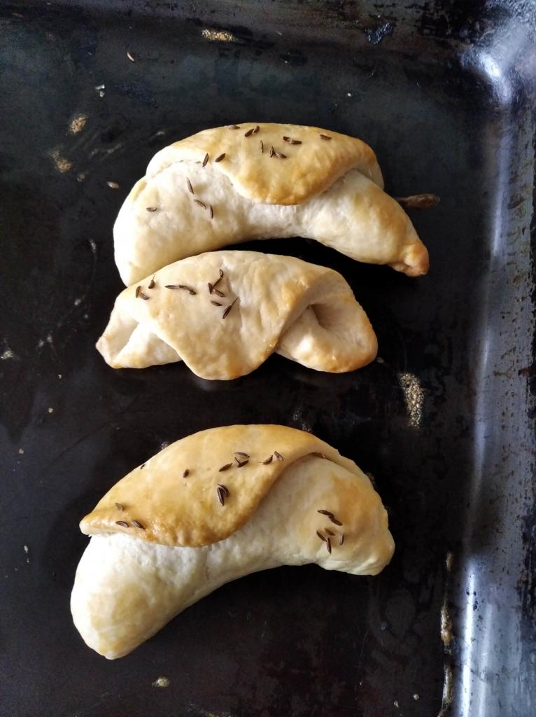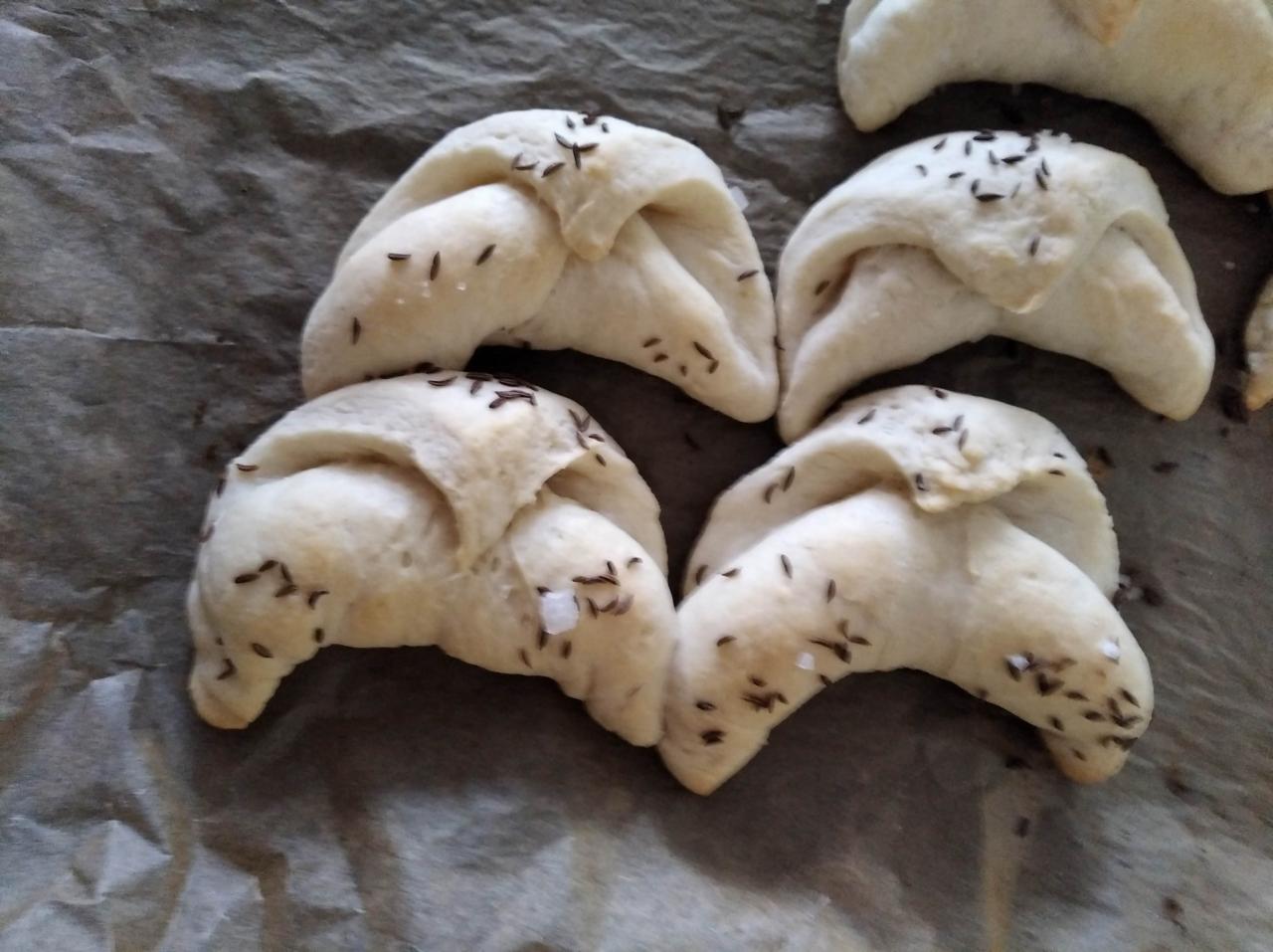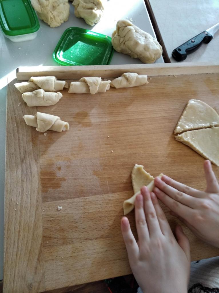 Základem receptu bylo kynuté těsto, což pro děti není úplně lehké, ale i tak se kvásek povedl všem. Velikost rohlíků si děti zvolily podle svého a takto vypadá výsledek. Chuťově jsou rohlíky dobré a určitě si je vyzkoušejte.