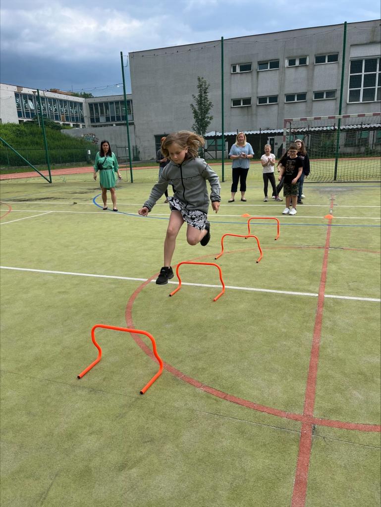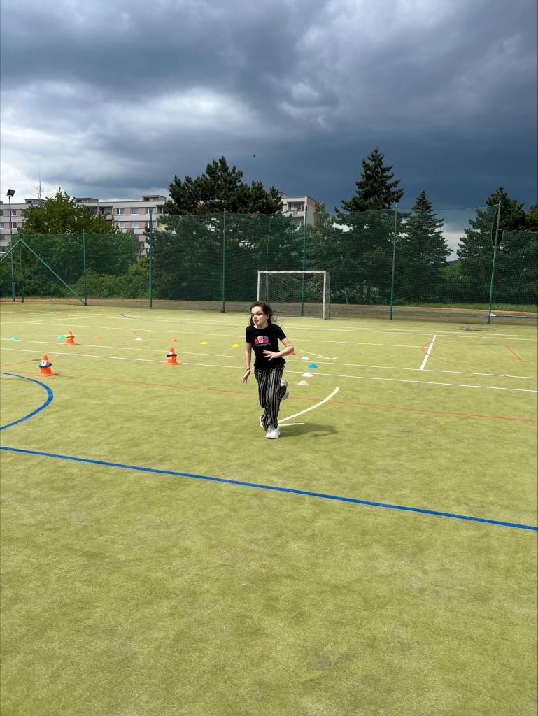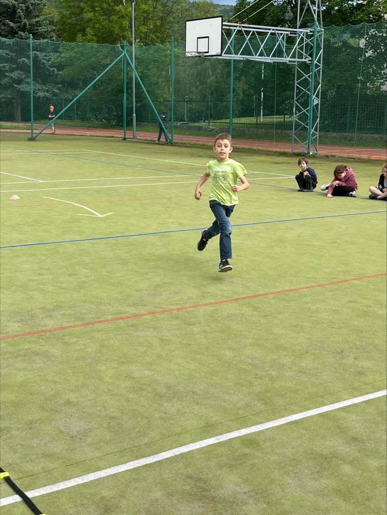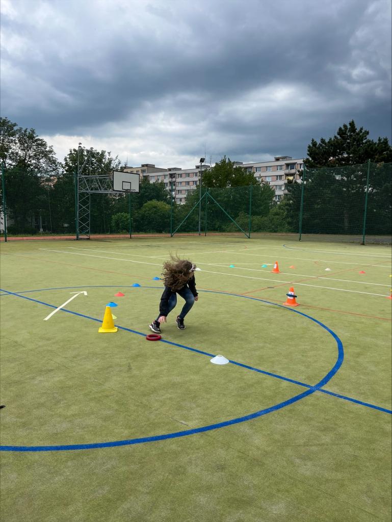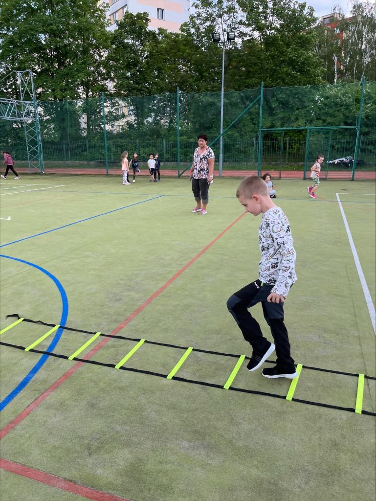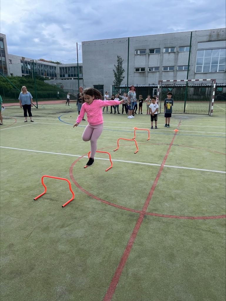 Paní vychovatelky si pro účastníky připravily pohybovou sportovní dráhu na hřišti. Byla to štafeta na čas. Všechna oddělení mezi sebou soutěžila. Počasí nám přálo a účast byla veliká.