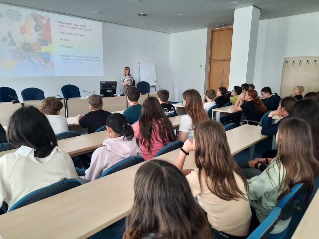 Tento den navštívili i Infocentrum v centru města, které si důkladně prohlédli. Rozdělili se do skupin a plnili zadaný úkol, který měl mezipředmětovou vazbu český jazyk - zeměpis. Tímto úkolem bylo vymyslet text či básničku na téma “Všechny vůně Evropy”. Některé básně se jim opravdu povedly a budou poslány do literární soutěže, kterou pořádá Eurocentrum. Celá exkurze se konala v rámci OP JAK.