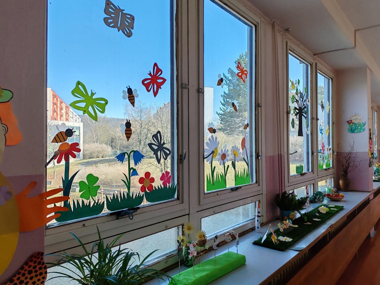 Jaro nám pomalu vystřídalo zimu, a tak se změnila i výzdoba ve školní družině a jejím okolí. Sněhové vločky, sněhuláky, čerty a Mikuláše či vánoční stromečky nahradili motýlci a včelky, sněženky a bledule, stejně jako kuřátka a velikonoční vajíčka. Chodby a družiny se rozzářily nejrůznějšími veselými barvami, což, společně s probouzející se jarní přírodou za okny, pozvedlo i pozitivní náladu v naší škole. Všichni s očekáváním vyhlížíme teplé jarní dny, k čemuž nám dopomáhá právě krásná jarní výzdoba dětí ze ŠD.