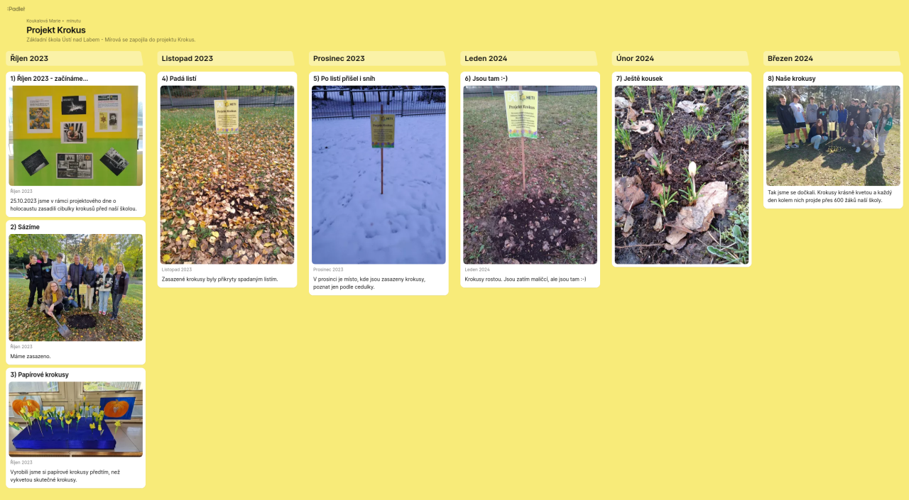 Od podzimu jsme čekali na jaro a v měsíci březnu jsme se nakonec dočkali. Krokusy krásně kvetou a každý den kolem nich projde přes 600 žáků naší školy.