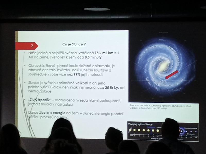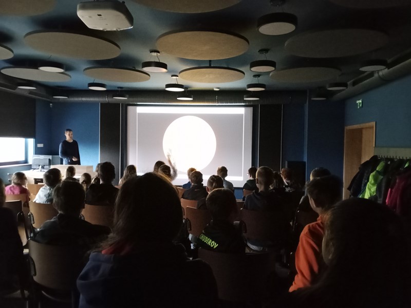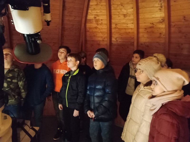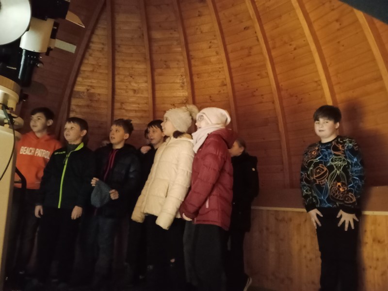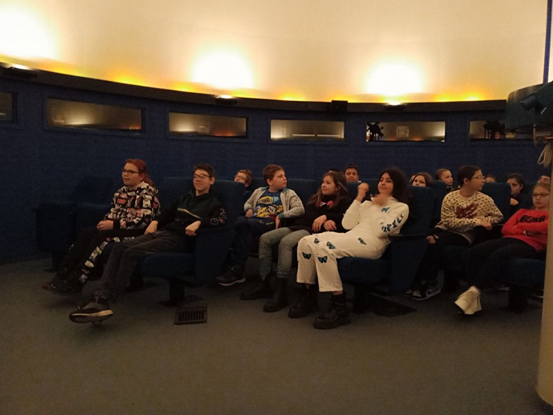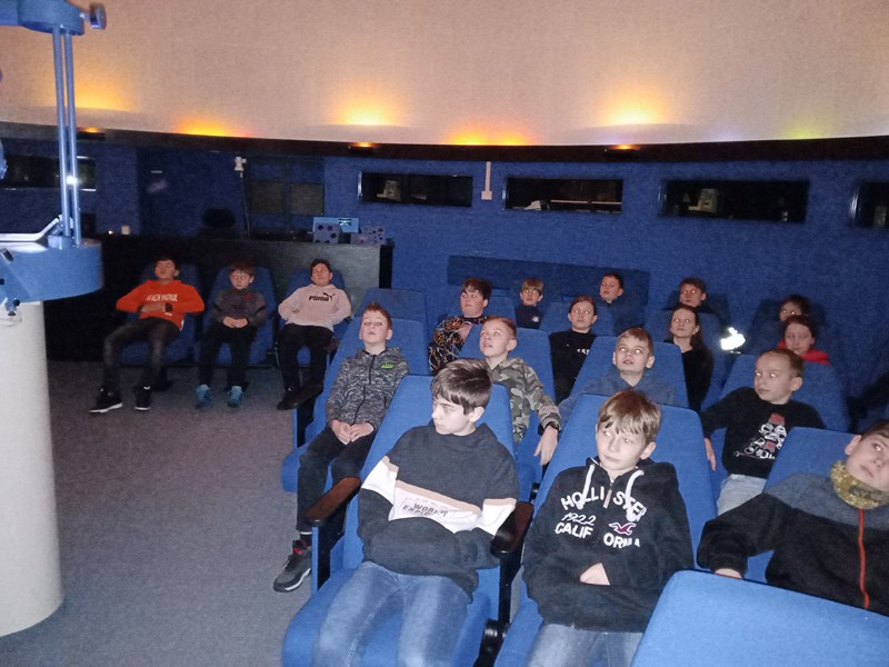 Žáci se zde pod vedením zkušeného lektora seznámili s pohyby Slunce, Měsíce a hvězd na pozemské obloze. Bylo vysvětleno střídání dne a noci, střídání fází Měsíce a změn ročních období. S některými vysvětleními nám pomohl i mimozemšťan Paxi. Na hvězdárně se žáci seznámili s hvězdářským dalekohledem, na interaktivních tabulích si zkusili různé rébusy a hádanky a také si mohli zakoupit nějaký suvenýr. Výlet se povedl, dětem se vše líbilo a nejhezčím zážitkem byla projekce a pozorování noční oblohy.