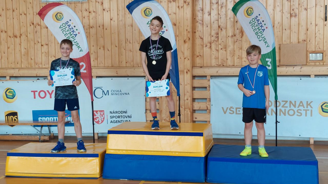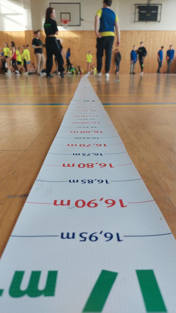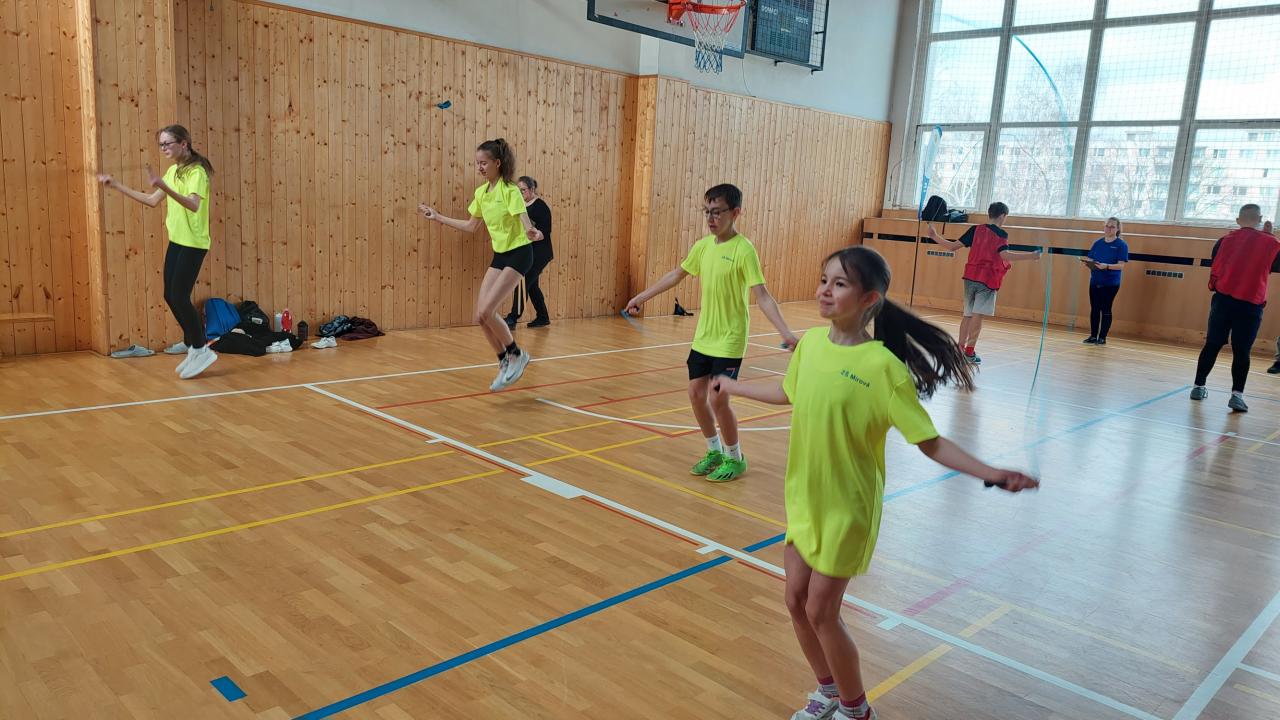 Po prezentaci škol a nástupu účastníků byli všichni rozděleni do osmičlenných skupin a začalo se soutěžit. První disciplína byla trojskok, kde nejdelší skoky dlouhé 8,57 metrů předvedli Sebastian H., v dívkách pak Barbora B. skočila 6,90 metrů. Druhá disciplína byla hod plným míčem přes hlavu vzad. Nejdelší hod předvedl opět Sebastian H., rovných 18 metrů, v dívkách hodila Tereza M. 11,75 metrů. Třetí disciplína prověřila sílu paží, rovných 100 pánských kliků za 2 minuty udělal Michal P., dámských pak nejvíce zvládl Matouš K. ze 4. třídy! Čtvrtá disciplína prověřila nejen zdatnost, ale také dovednost skákat přes švihadlo čtyřmi různými způsoby, a to vždy 30 sekund snožmo vzad, pak snožmo vpřed, pak vajíčkem a na závěr střídavě. Téměř neuvěřitelných 300 přeskoků předvedl Patrik W., pouze o sedm méně pak Tereza M. Závěrečná disciplína byl driblink s basketbalovým míčem po dobu 2 minuty, 350 metrů naběhal Patrik W. a 330 metrů Vendula S. mezi dívkami.