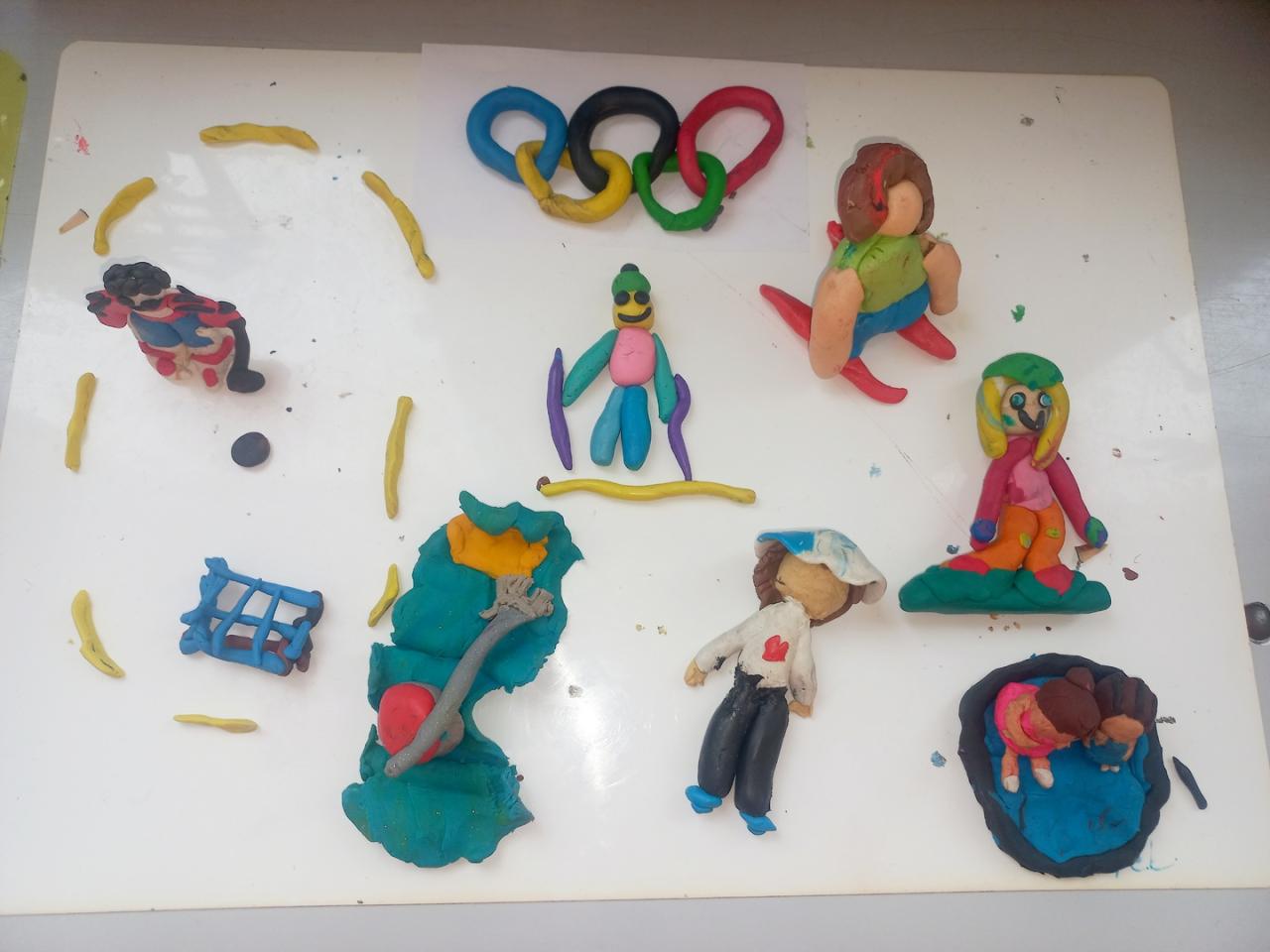 Získané informace dále využili při tvořivých aktivitách – modelovali sportovce a seznamovali se s jednotlivými disciplínami. Také jsme si povídali o tom, co znamenají olympijské hodnoty – přátelství, respekt a snaha dělat věci co nejlépe.