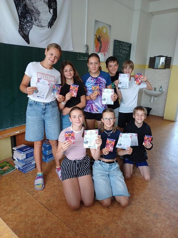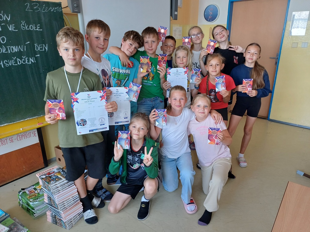 Celkem 353 žáků 1. stupně splnilo podmínky pro získání Diplomu, tedy dokončilo 8 testových disciplín, na jejichž základě se dozví pohybové předpoklady pro několik sportovních odvětví. Na 2. stupni dokončilo projekt, tedy 10 testových disciplín, 280 žáků, z nichž 73 obdrželo bronzový, stříbrný, zlatý nebo diamantový odznak. Moc gratulujeme. Zároveň děkujeme všem 628 žákům školy, kteří projekt dokončili, že pomohli svými výkony k hlavní výhře v podobě 40.000,- Kč pro školu, které na podzim proměníme v nákup nových sportovních pomůcek.