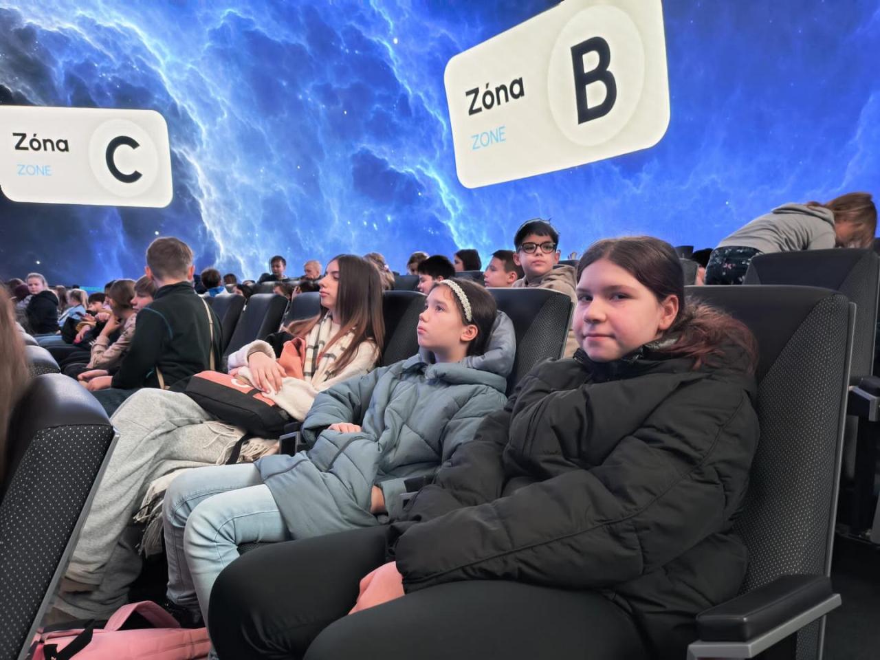 Cestou nás doprovázelo sluníčko a my se už těšili na vesmírný program. Po vstupu do sálu planetária jsme se pohodlně usadili do měkkých sedadel a za chvilku se nad námi rozprostřela noční obloha. Pan moderátor nám poutavě vyprávěl a ukazoval zimní noční oblohu, hvězdy a planety, souhvězdí a my nadšeně pozorovali měnící se obrazce na noční obloze. Potom jsme se vypravili prozkoumat Sluneční soustavu, doplnili jsme si znalosti ze školy, protože jsme se v prosinci o Sluneční soustavě učili. Prolétli jsme celou Sluneční soustavou, nadšeně tleskali a cestou domů si vyprávěli o zážitcích z našeho „vesmírného letu.“