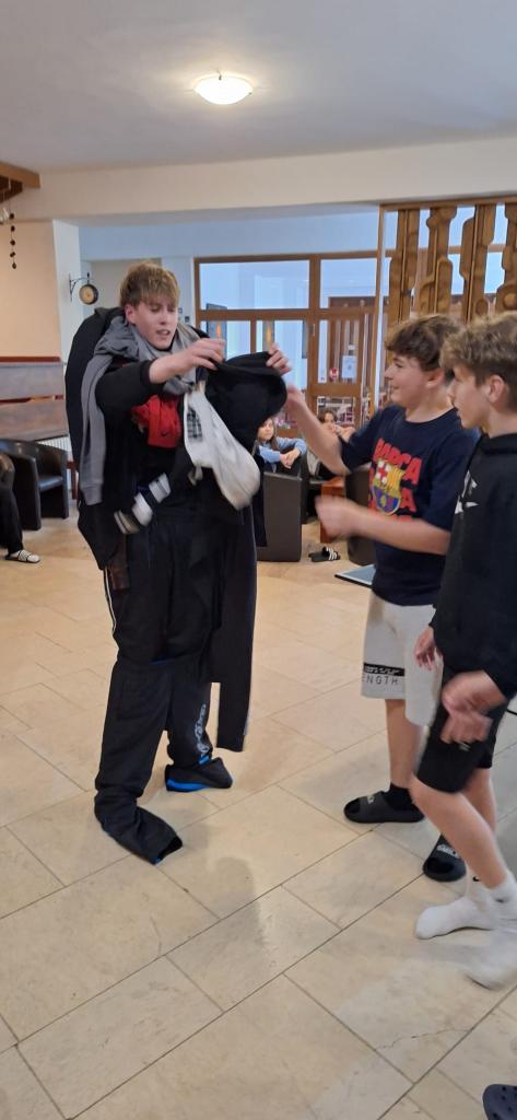 Po poledním klidu jsme se vydali na výšlap k rašeliništím Swamp. I zde jsme se svými týmy získali body do hry. Po večeři jsme hádali názvy písniček z pohádek a při scénkách jsme nastavili zrcadlo našim učitelům. Pěkně jsme se u toho násmáli.