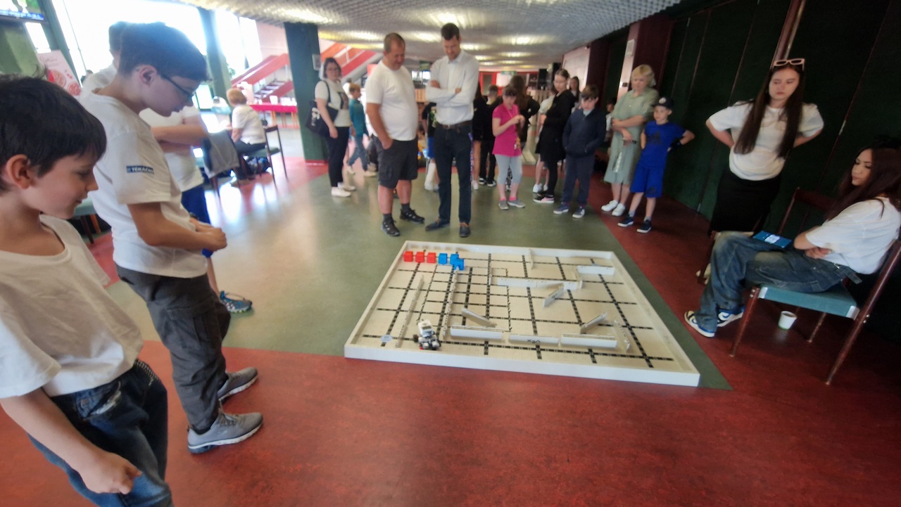 Cílem této soutěže bylo splnit dvě části. V první musel robot projet bludištěm v co nejrychlejším čase, v druhé části musel robot postupně nasbírat barevné míčky a umístit je do branky. Celá akce byla skvěle připravena, žáci měli dostatek času na zkoušení a programovávání robota pro úspěšné splnění úkolu. Soutěž byla pro nás velmi přínosná, poučná a již se těšíme na další ročník.
