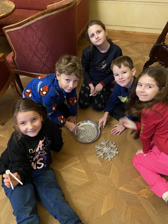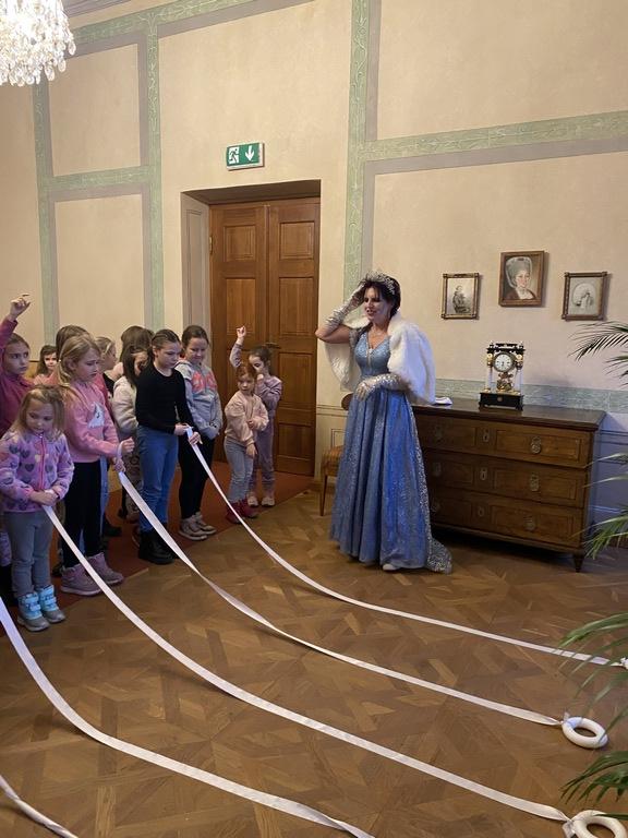 V pondělí 15.12. se vydalo 1. a 2. oddělení ŠD na zámek v Děčíně, kde byl pro ně připraven program “Prohlídka s ledovou královnou”. Děti procházely zámkem v doprovodu ledové královny a musely splnit 5 úkolů. Za každý úkol dostaly jeden klíč, nicméně pouze jeden pasoval do zasklené komnaty, kde byla ukryta ledová hůlka s diamanty. Děti vystřihovaly ledové vločky z papíru, kterými zdobily šaty ledové královny. Řešily zimní hádanky, namotávaly ledové kruhy na dlaň, chodily po ledových krách a pinzetou vkládaly diamanty do vločky. Nakonec se nám podařilo tajemnou komnatu odemknout, ledová královna dostala zpět svou hůlku a každý z nás za odměnu dostal na památku krásný diamant.