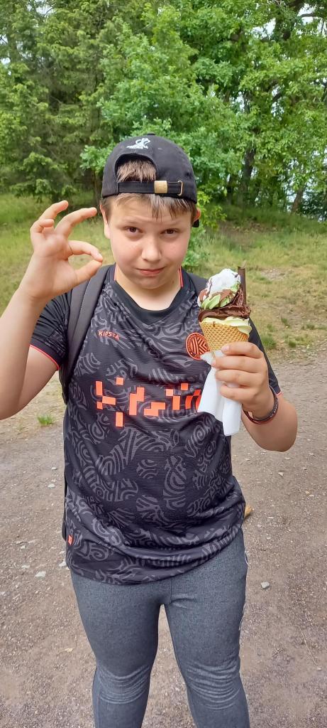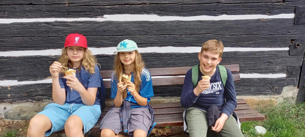 Dopoledne jsme plnili digitální kompetence a vyzkoušeli aplikaci Plantnet. Poté se na nás z Holan přijeli podívat naši kamarádi a spolužáci, kteří jsou na cyklistickém kurzu. Po obědě jsme vyrazili na procházku po naučné stezce Čtyřlístku. Odměnou nám byla luxusní zmrzlina v Břehyni. Túra to byla pořádná, nohy nás sice bolely, ale jsme připraveni večer fandit našim hokejistům a zároveň si zatančit na závěrečné diskotéce.