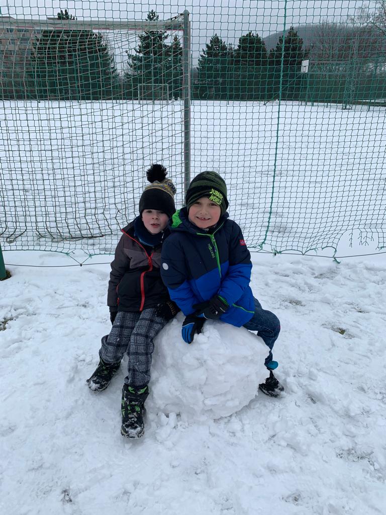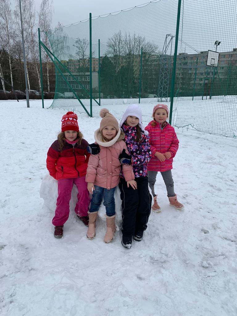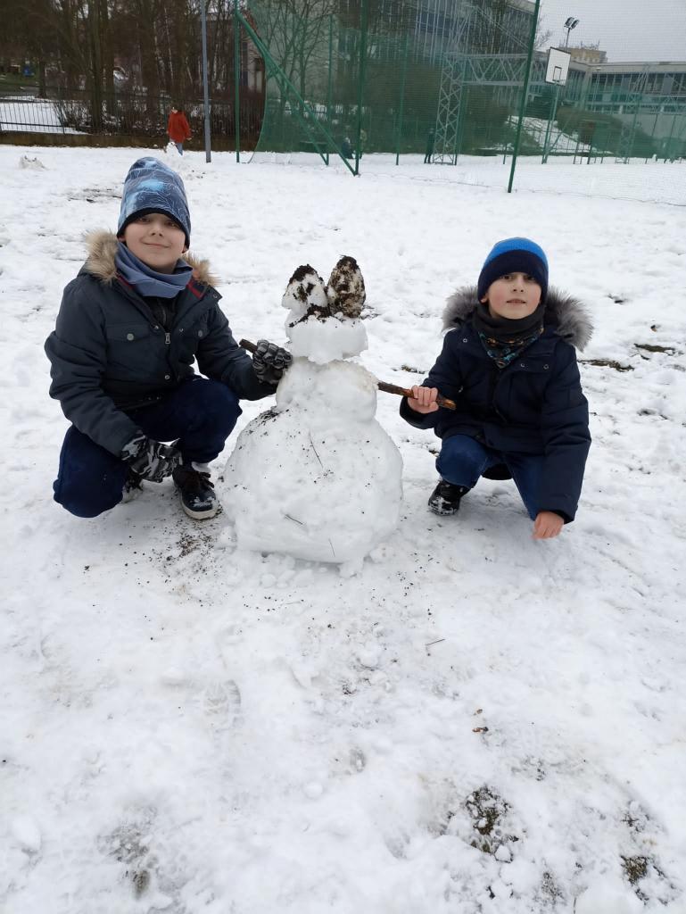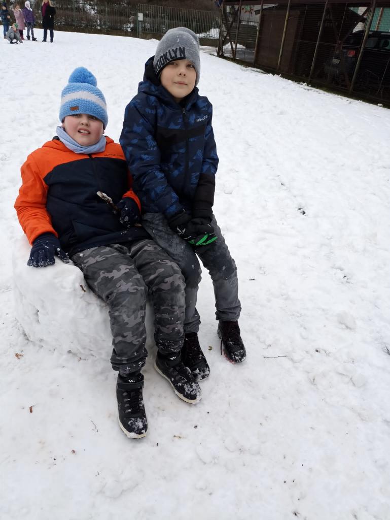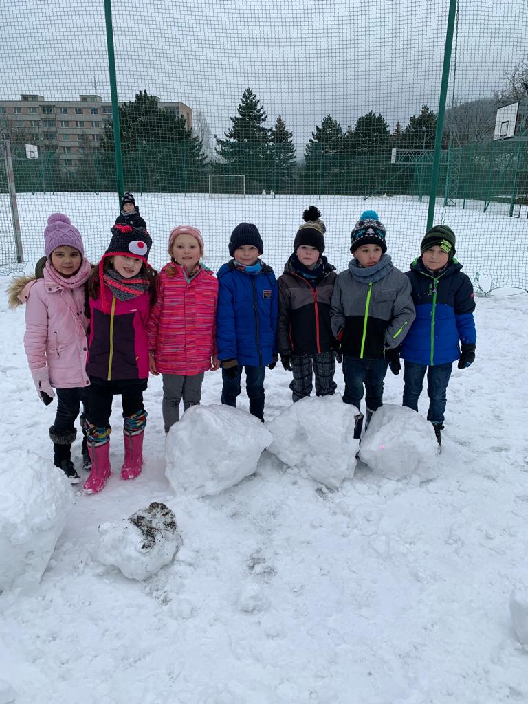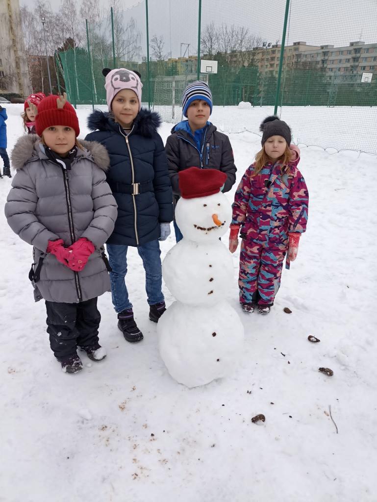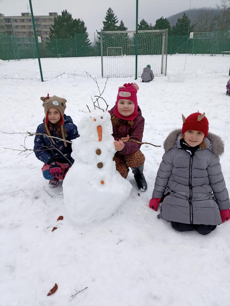 Sněhové radovánky dětí ze ŠD na školním hřišti.