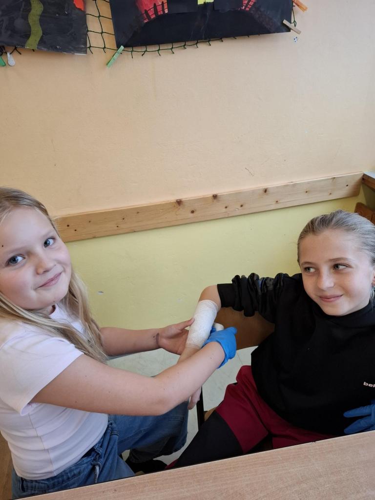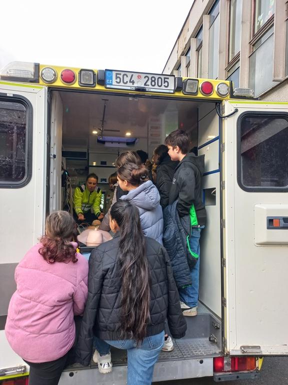 Současně jsme domluvili sanitku, kde si děti mohly prohlédnout, co je zajímá. Vyslechly zajímavou přednášku a jako překvapení dorazilo i vozidlo Policie ČR. Všem se ukázky moc líbily.