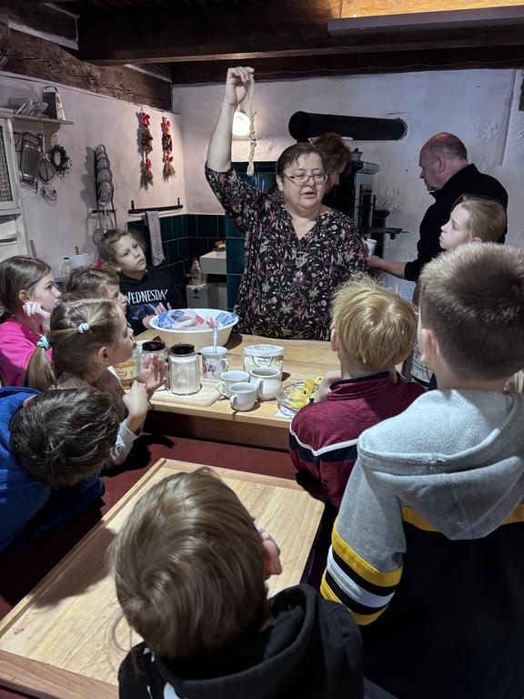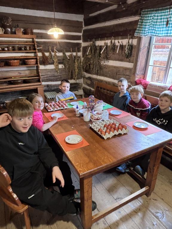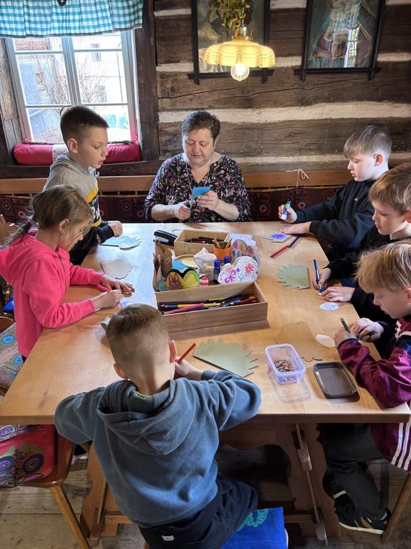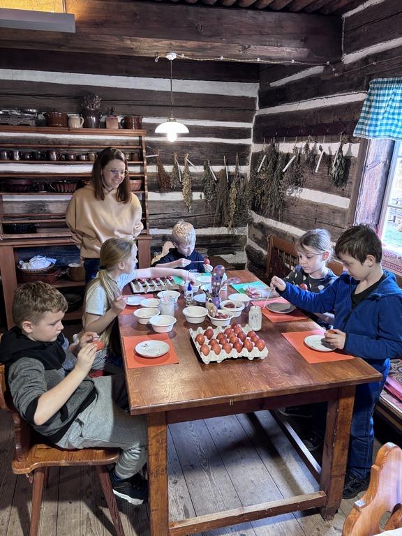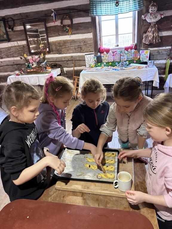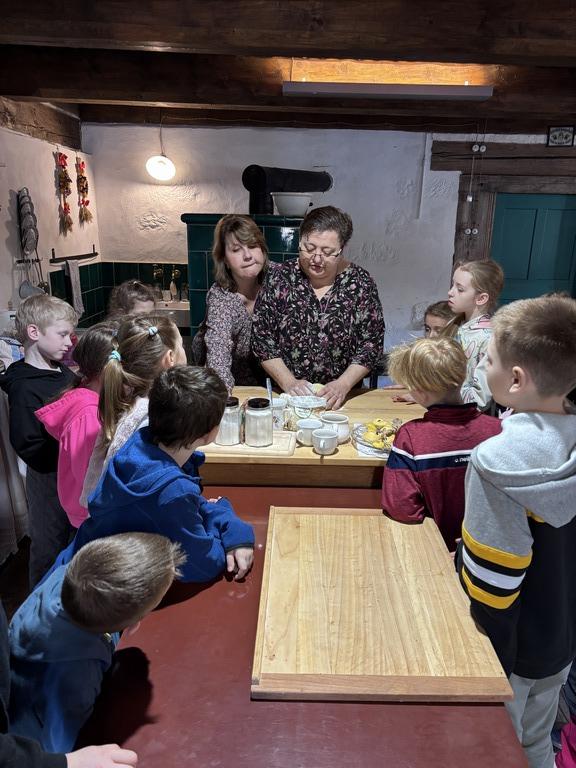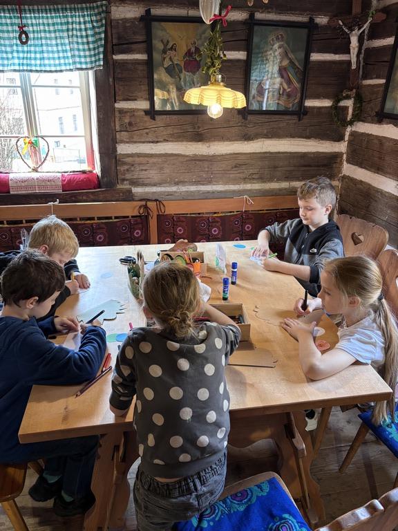 Dne 19.3.2026 si velikonoční atmosféru užili sportovci ze třídy 2.C. Teta Lenka poutavě vyprávěla o velikonočních zvycích na vesnicích a žáci pozorně naslouchali. Každý si ozdobil kraslici, vyrobil si stojánek na vajíčko a s tetou Petrou upekl velikonoční pečivo – jidáše. V provoněné roubence všichni se zájmem sledovali pletení pomlázky. Nakonec malí koledníci hledali velikonoční nadílku na zahradě. Děkujeme za připomenutí českých lidových tradic.