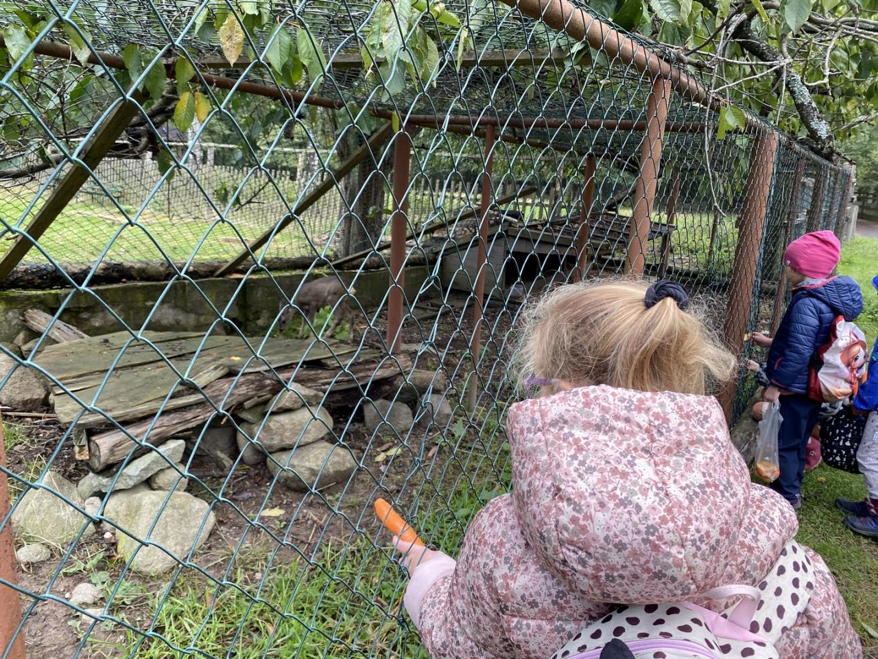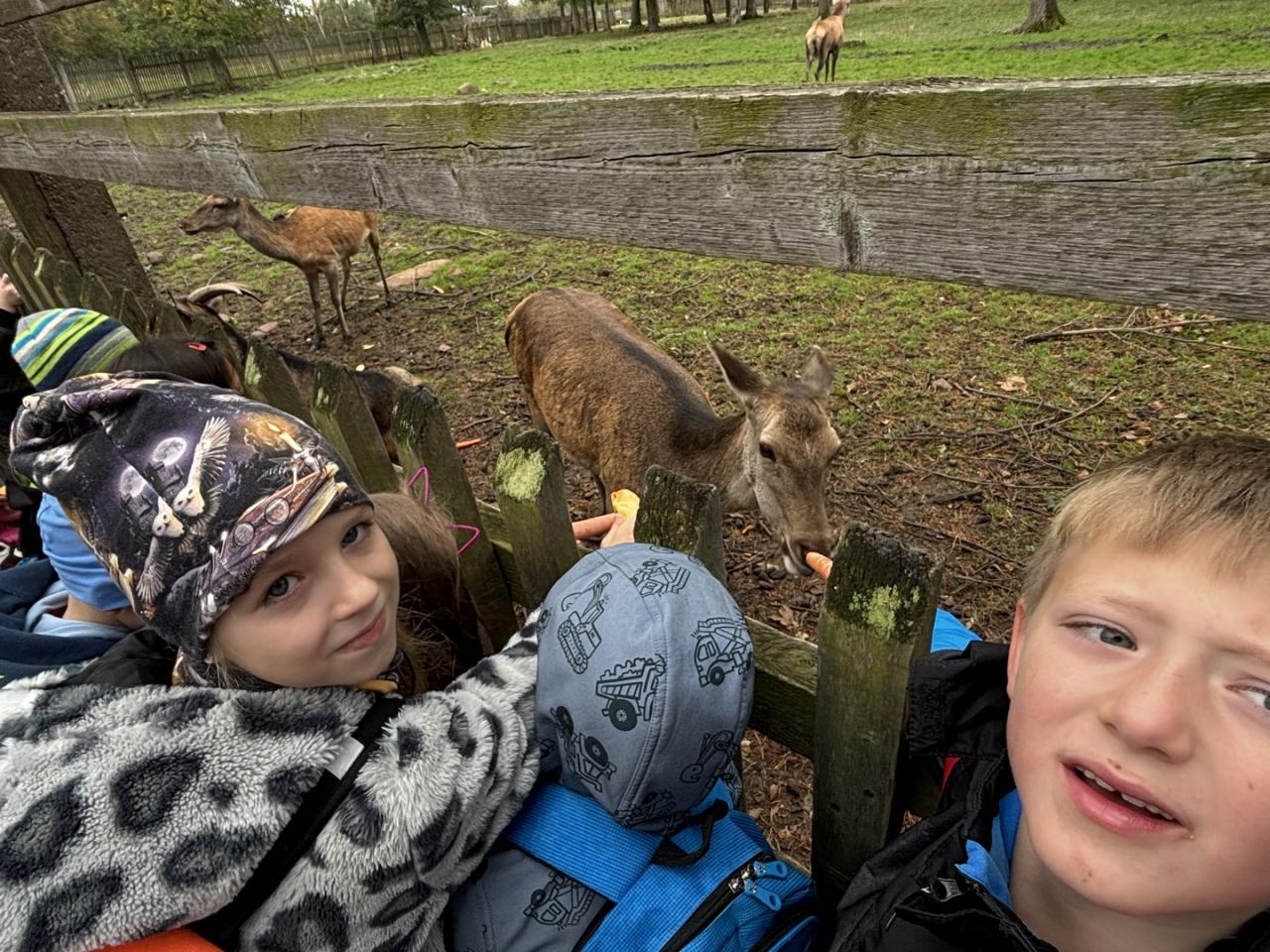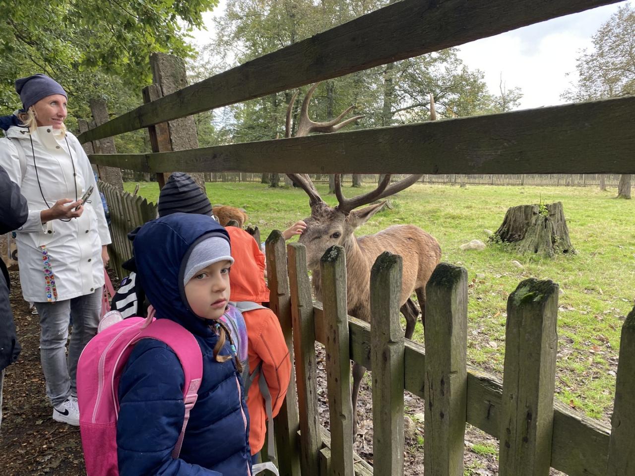 Zvířata zvyklá na lidi už čekala u plotu. Žáci tak mohli krmit a pozorovat jeleny, laně, divoká prasata, kozy, srnče, králíky, morčata, slepice, kachny a dovědět se informace o jejich životě.