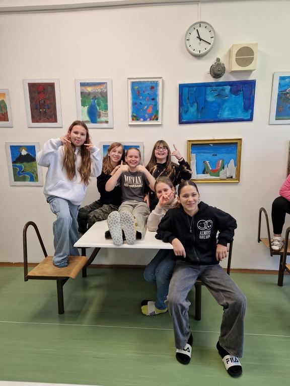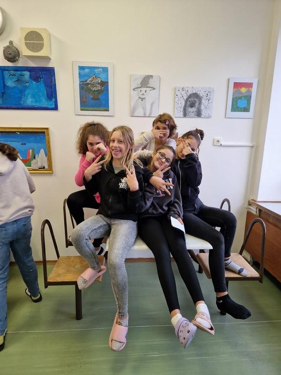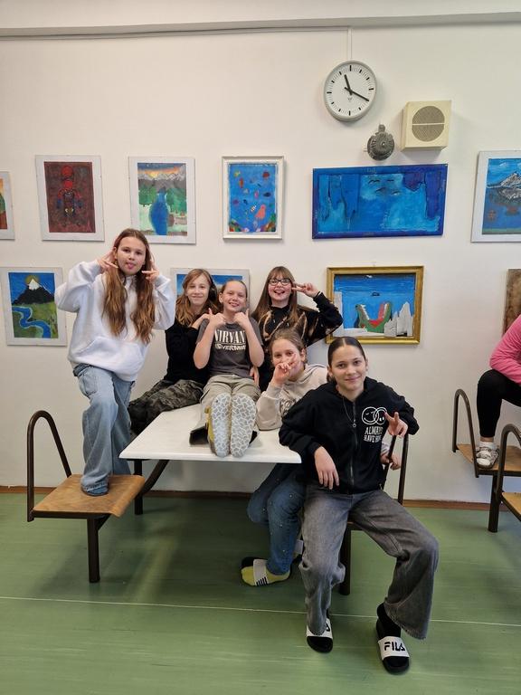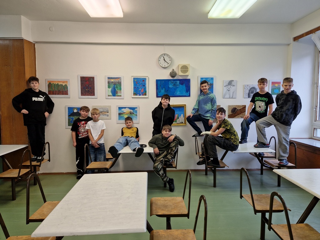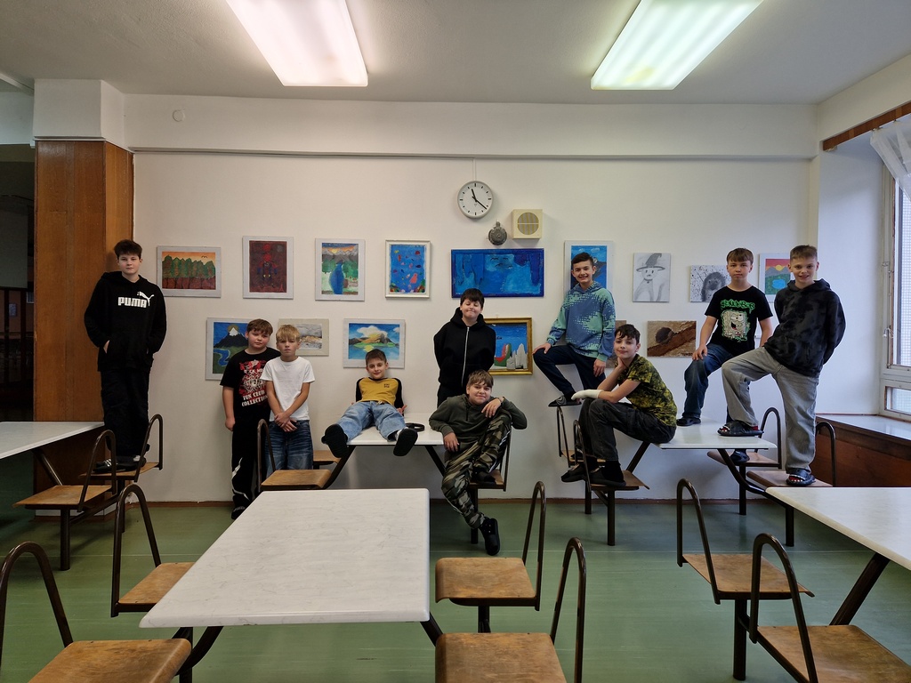Děkujeme za podporu našeho pana ředitele, kterému se myšlenka školní galerie v jídelně líbila a také moc šikovnému panu školníkovi, který nám pomohl obrázky navěsit.