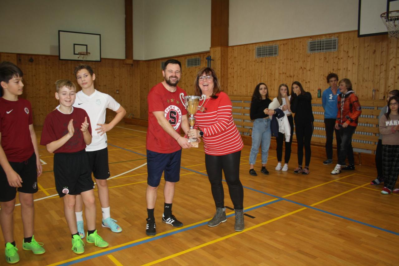 V tomto futsalovém utkání se proti sobě postavili příznivci Sparty a Slavie. Mužstva byla složena ze žáků druhého stupně a pánů učitelů Doboše, Krska a Žďárského. Před třemi lety s velkým přehledem zvítězila Slavia a na 3 roky si mohla užívat putovního poháru. Sparťané chtěli udělat vše proto, aby se pohár letos dostal do jejich rukou. Utkání hrané na 3x 30 minut mělo od začátku skvělý náboj a dlouho bylo skóre velmi vyrovnané. Zápas se lámal až v poslední třetině, kdy Sparťané šli do trháku a vítězství už si nenechali vzít. V celkovém kontextu Sparta zvítězila zaslouženě, avšak konečné skóre 14:7 úplně neodráží dění na hřišti a z pohledu Slavie je až kruté. Součástí celého dopoledne byly tři doprovodné akce. Tou první byla dovednostní soutěž, druhou byl součet všech FAN předmětů. Vítězové soutěží si mohli připsat jeden gól. Třetí částí bylo promítání dokumentu o historii derby pražských "S".