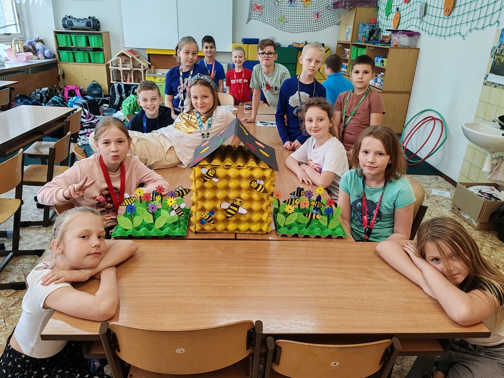 Jelikož jsme si nedávno v ŠD připomínali Den Země, byla ekologie též hlavním tématem další, v pořadí již jedenácté, celodružinové soutěže. Vzali jsme nejrůznější odpadové materiály a snažili se je přetvořit na originální výtvory. Děti ze ŠD 1 nabarvily plata od vajec tmavě zelenou barvou a slepily obřího krokodýla s ostrými zuby. ŠD 2 využila papírové krabice, PET lahve či plastová plata od bonboniér a zkonstruovala supermoderního robota, jehož děti pojmenovaly „Recykláček“. I ŠD 3 se nechala inspirovat přírodou, a vyrobila červené raky z plat od vajíček. Krmítko pro ptáky a miniaturní vláček, to jsou výtvory dětí ze ŠD 4. Požity byly krabice od mléka, ruličky od toaletního papíru a korky. Originální nápady měla i ŠD 5, která zhotovila letadla, panáčka a květináček. Na výrobu děti využily víčka z PET lahví, ruličky od toaletního papíru či kuchyňské utěrky. ŠD 6 postavila včelí úl, včetně květinových záhonků a řady včeliček. K tvorbě děti použily kromě plat od vajíček, také tyčky od nanuků. Všechna díla se dětem opravdu povedla, a proto byla ve škole i vystavena.