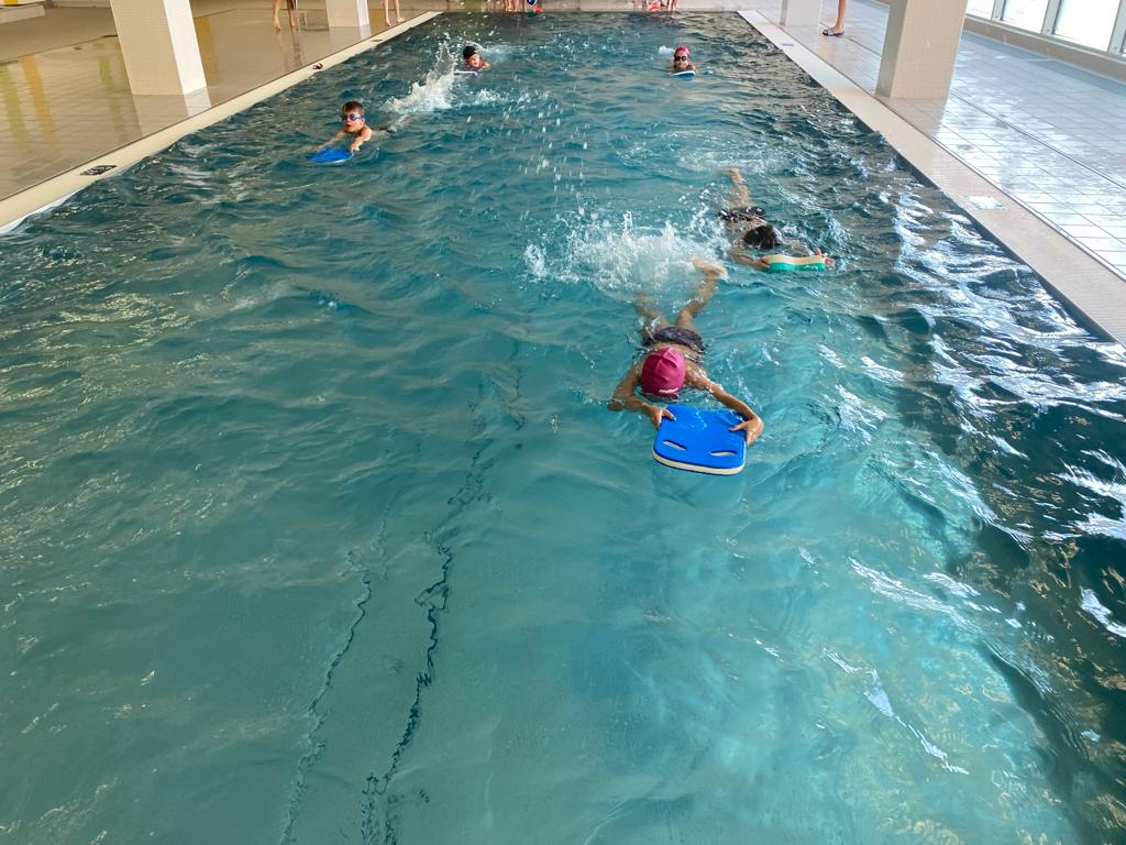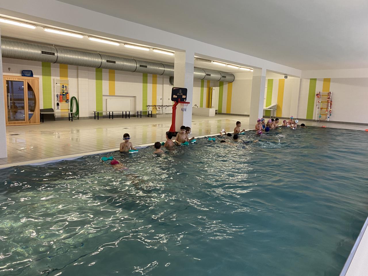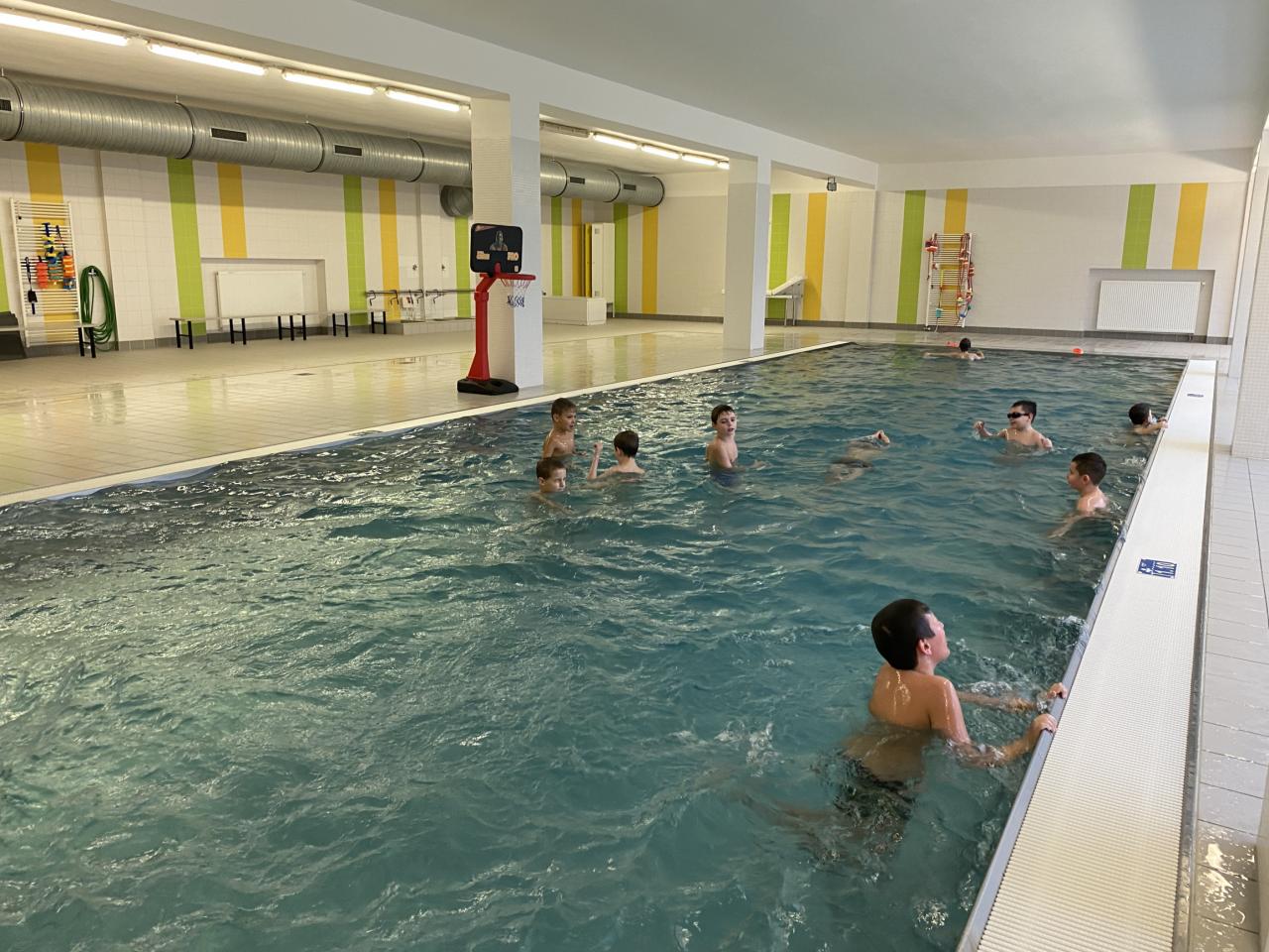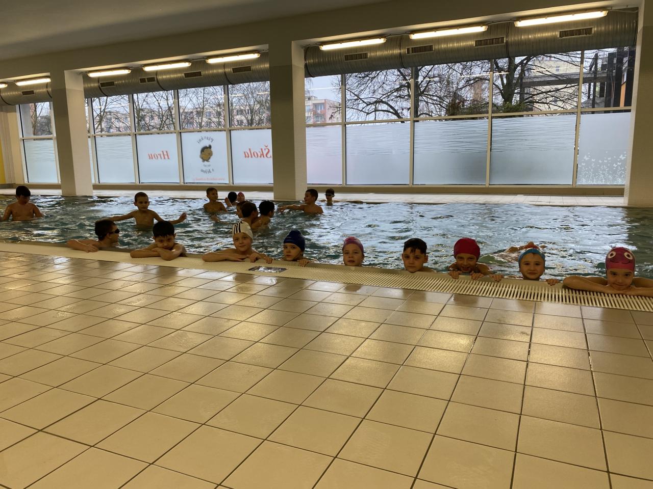 Od rána se střídají na bazénu. Každá třída má vyhrazený čas k nácviku plaveckých stylů. Žáci začali s výcvikem v září letošního školního roku a dnes už umí pěkně splývat, dýchat ve vodě. Při posledních hodinách se učili znakové nohy, kraulové nohy a začínají i s nácvikem kraulových rukou. Plavání je zábava i dřina zároveň. Nejlepší jsou hry ve vodě a třeťáci je ovládají nejlépe.